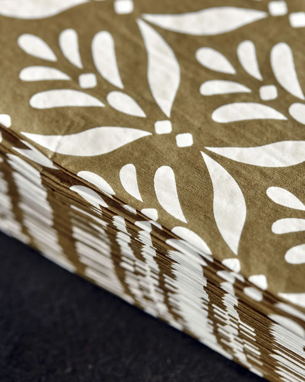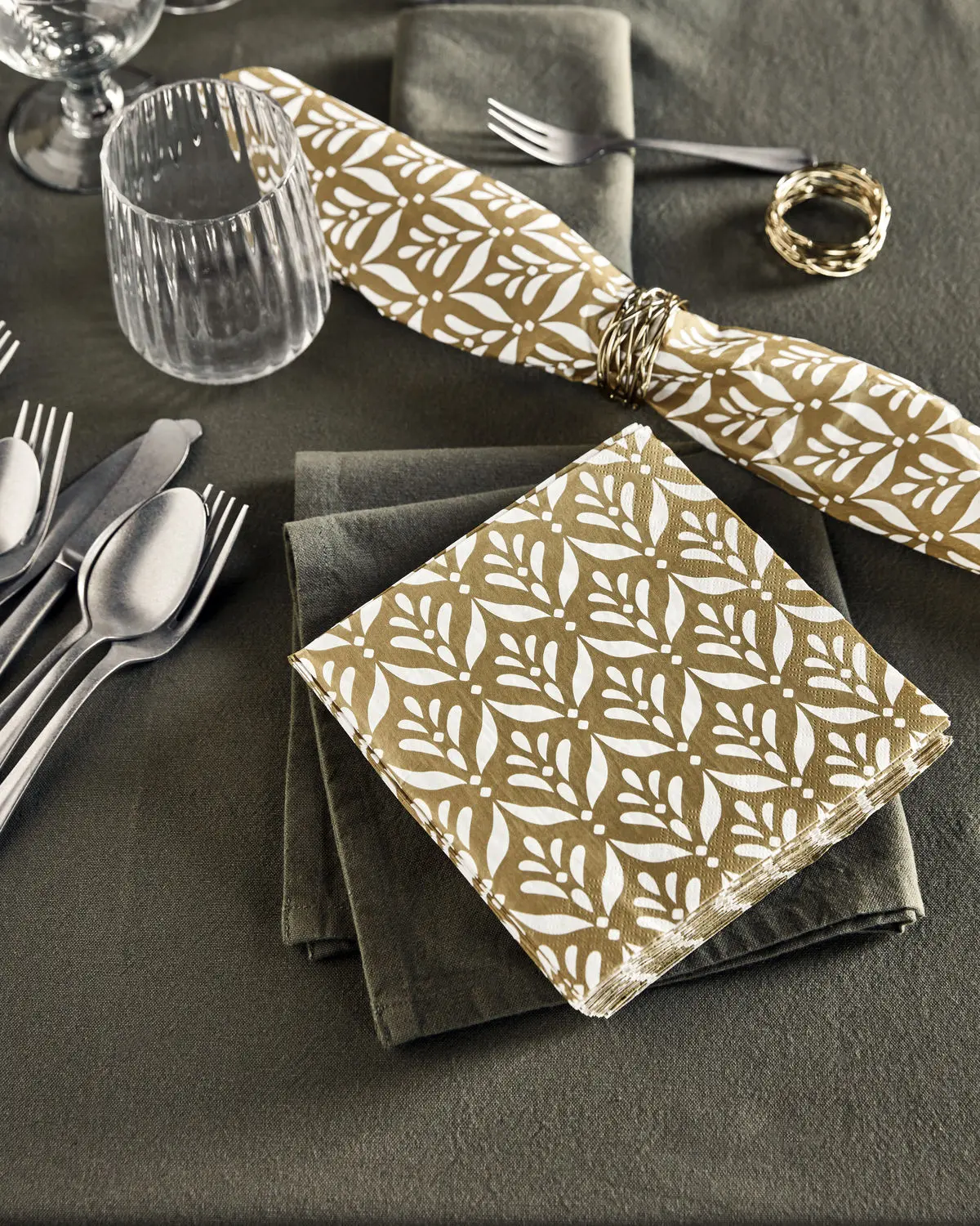 Pynt opp bordet og bedre din spiseopplevelse med disse vakkert designede papirserviettene, perfekte for enhver anledning. Med et sjarmerende mønster i brunt og offwhite, kompletterer disse serviettene enkelt ethvert servise, og tilfører det lille ekstra til borddekkingen din.