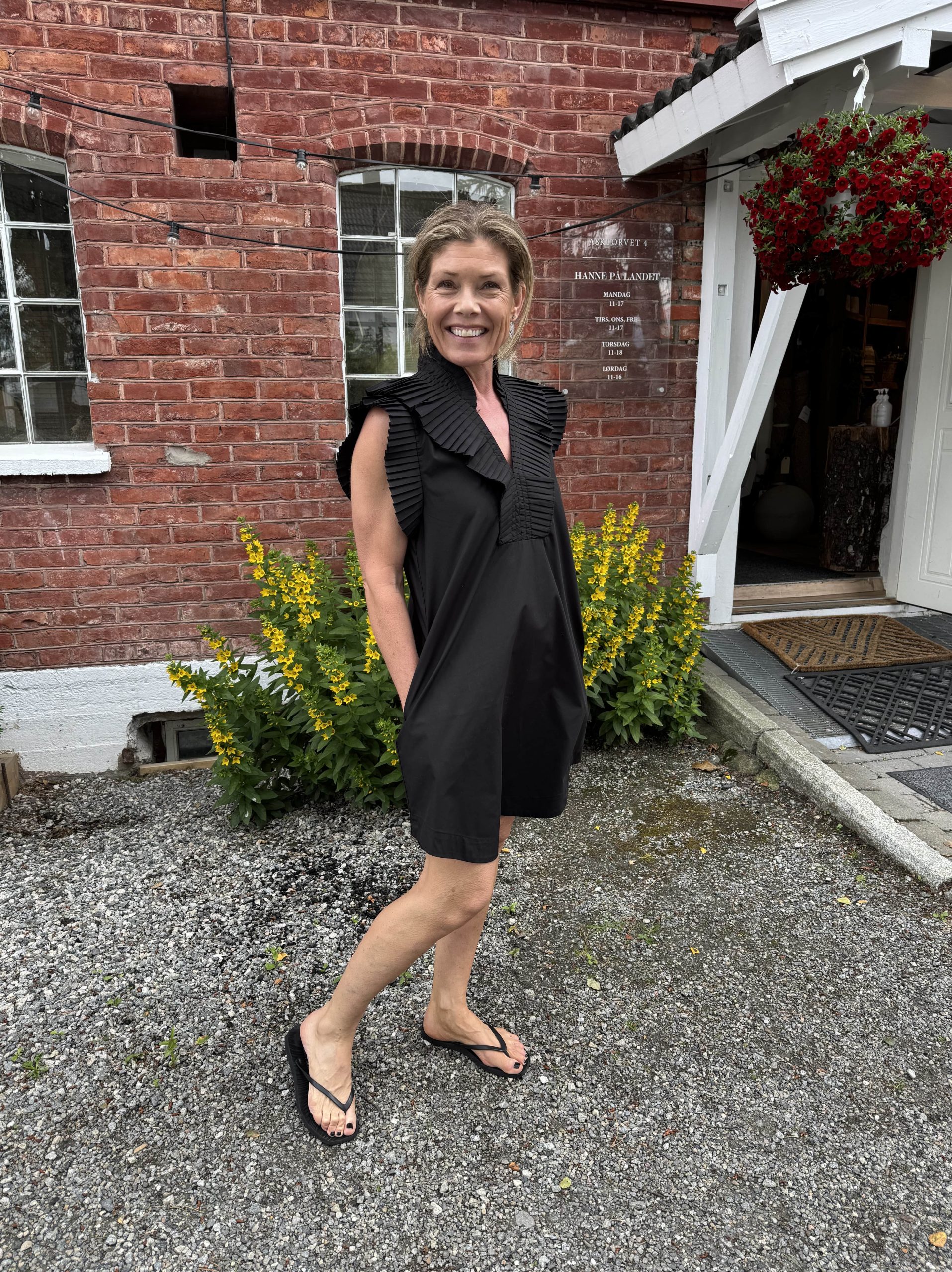 Svart kjole fra Gossia med plisserte detaljer langs kragen og ermene. Snittet er klassisk, men de delikate foldene gir kjolen et lett og elegant preg. Sidelommer gjør den både praktisk og behagelig å bruke.