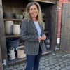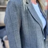 Elegant blazer fra Karmamia i en kombinasjon av rutete og fiskebensmønster. Den er laget i en myk ullblanding med 65 % ull og 35 % polyester. Blazeren har spiss krage, enkel knappelukking foran og to lommer i sidene. Dekorative sømmer gir plagget et stilig og gjennomført uttrykk.