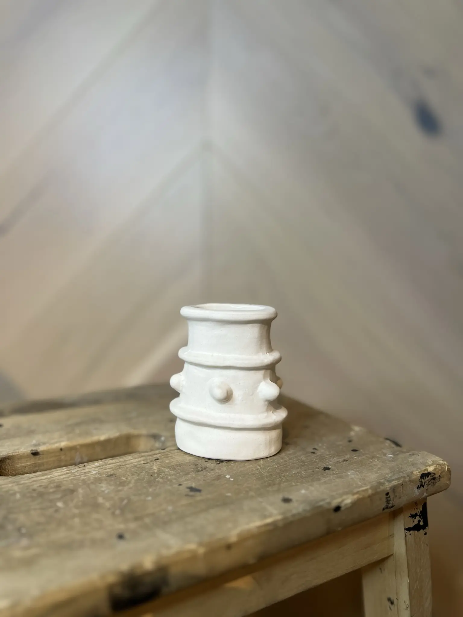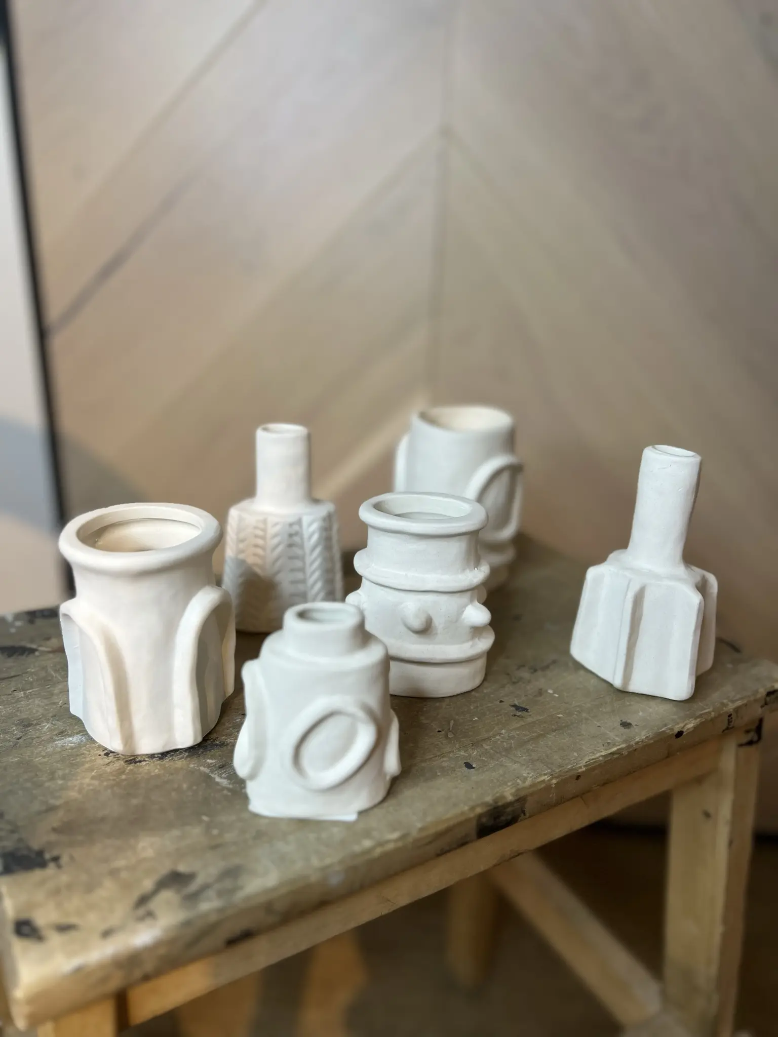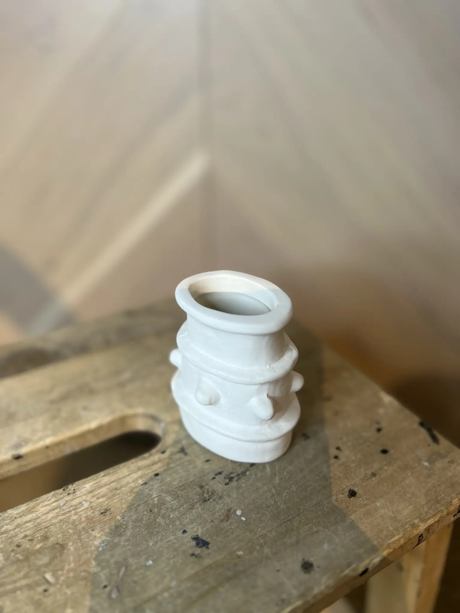 Disse Molly-vasene og -krukkene er utført i off-white steintøy, matt på utsiden, glasert på innsiden. Superfine til å dekke bordet og blande med krukker, lys og vaser.