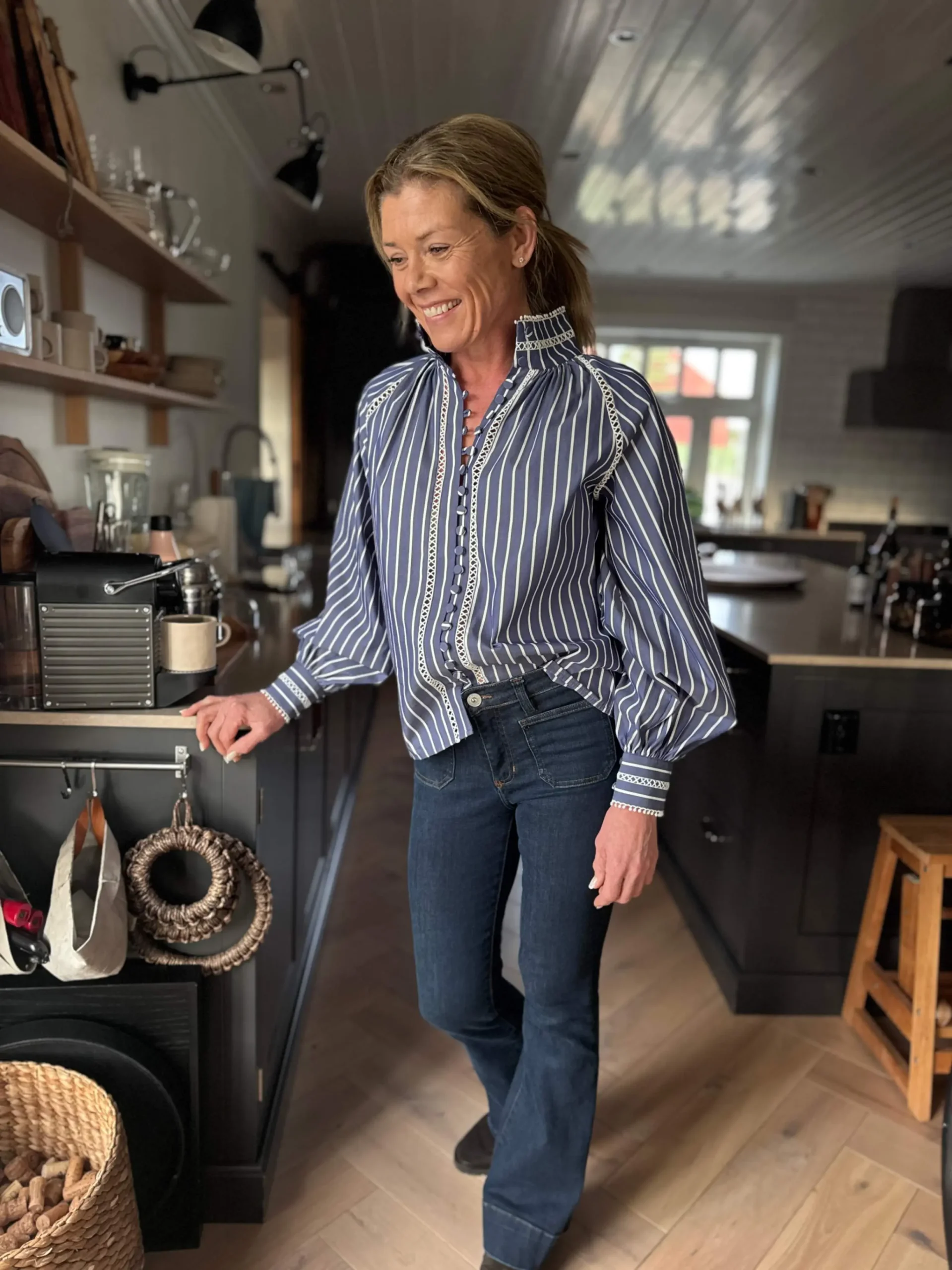 Monia, bluse, striper blå