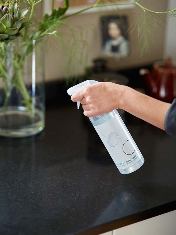 Spray på, dra kluten over og bingo, det er rent. En lettvint vask av kjøkkenbenken, kontoret, bilen eller båten og du behøver ikke skylle av. Den kan brukes på overflater av tre, sten og de fleste typer marmor (sjekk først med produsent og ta en liten test selv på et begrenset område), men ikke glass.