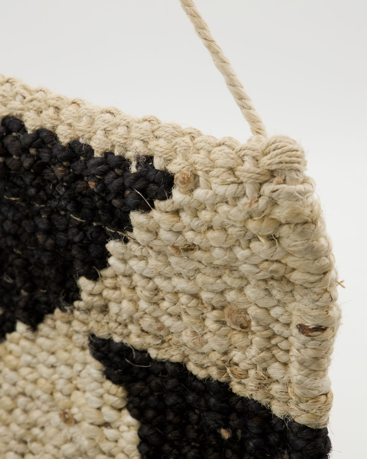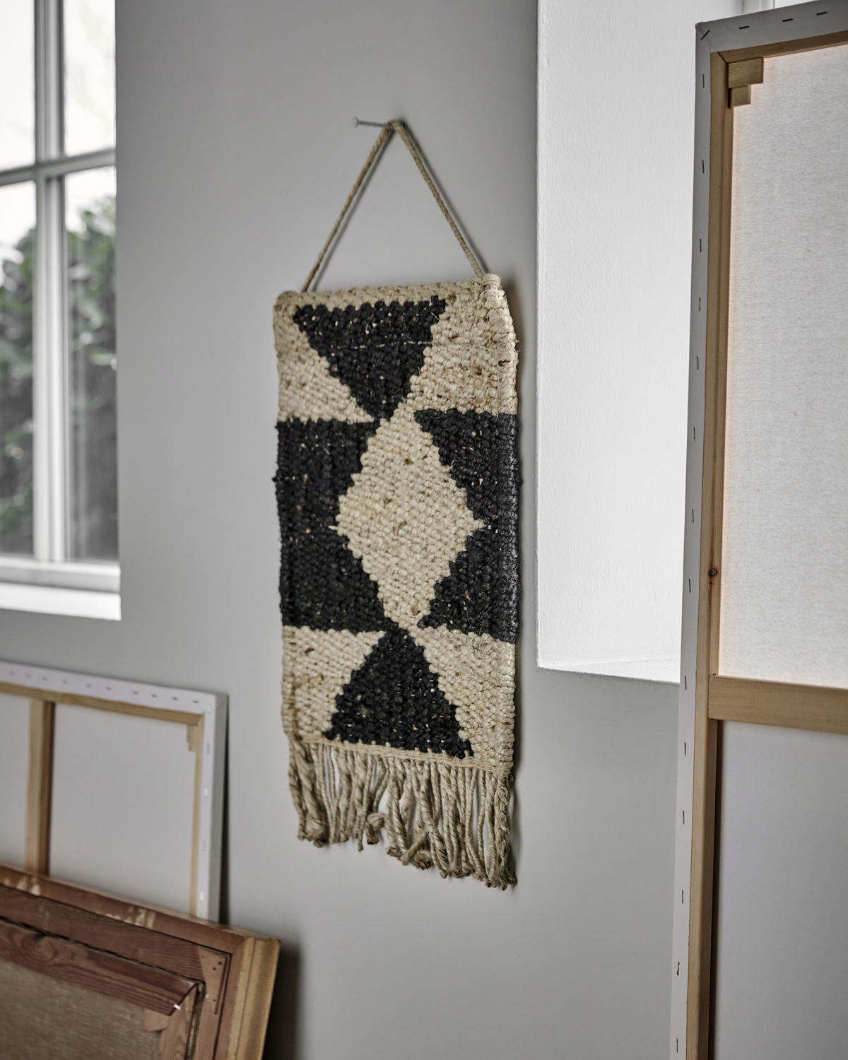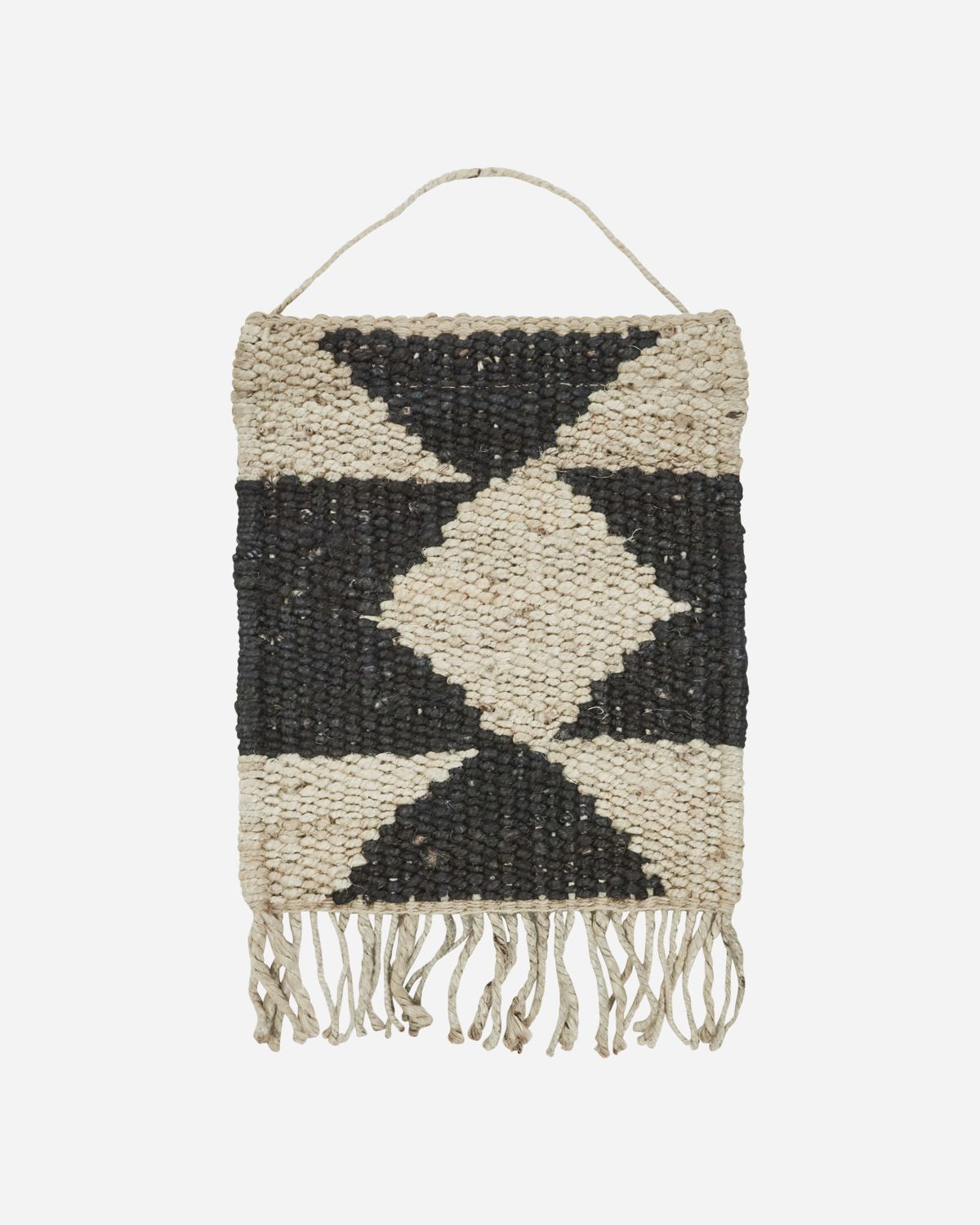 Forvandle ditt hjem med dette vakre veggkunstverket, laget av jute og mangotre. Med et moderne grafisk mønster og frynser, tilfører det tekstur og varme til ethvert rom og skaper et perfekt blikkfang.