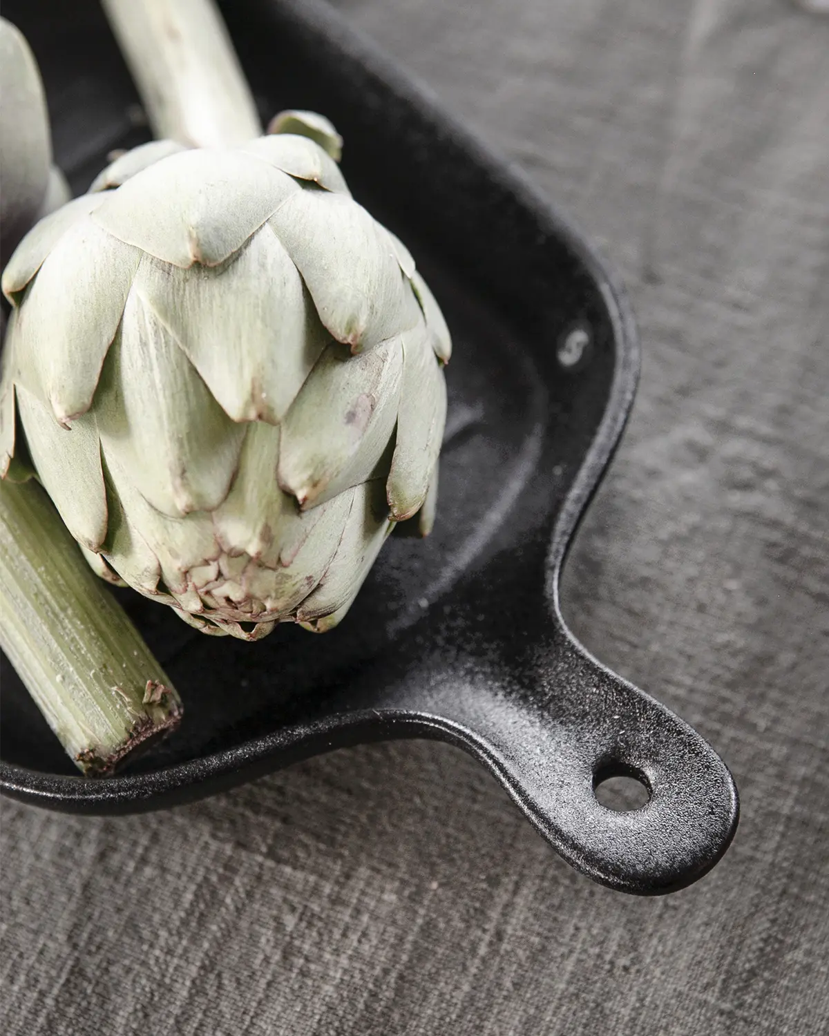 En form med håndtak i svartglassert keramikk fra serien Nabbo. Denne unike formen gjør servering og dekkingen kreativ og stilfull. Kombiner med andre porselensserier for en vakker detalj. Tåler oppvaskmaskin og ovn, men ikke mikrobølgeovn.