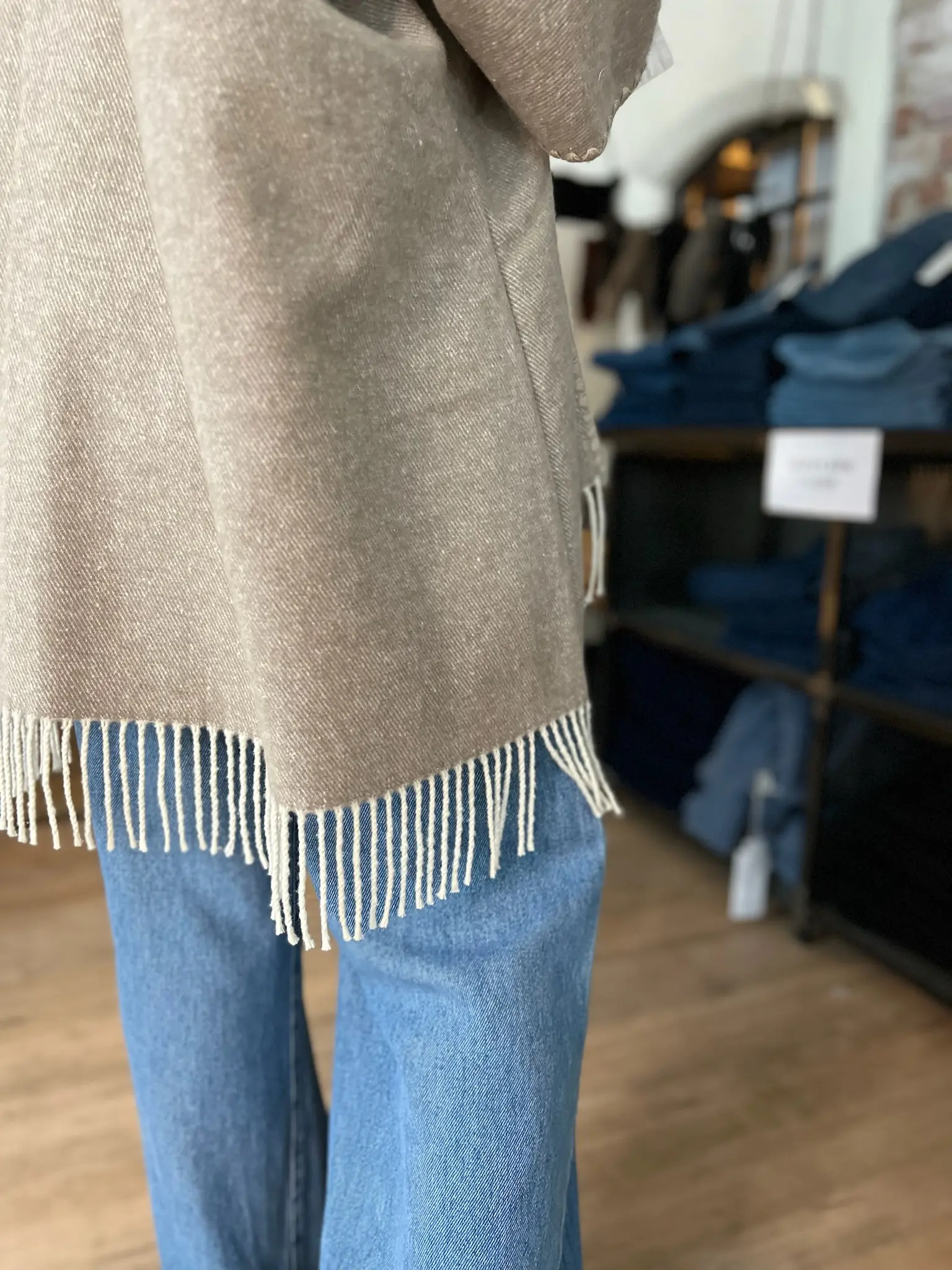 Poncho med frynser og 3/4 ermer i bomull blanding.