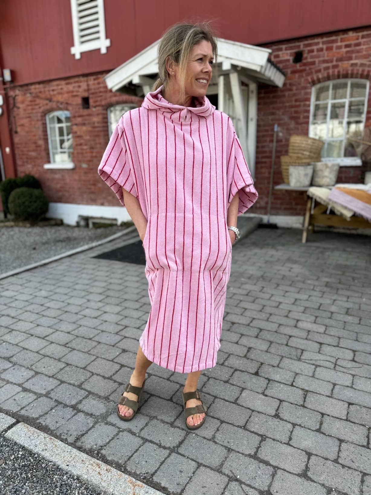 Naram Poncho er designet slik at du kan skifte våt badetøy under det, mens du holder deg dekket og varm etter svømmetrening eller etter en svømmetur på stranden. Det fungerer også enkelt som det ultimate koselige antrekket. Bare ta den på og du har det perfekte en-og-ferdige antrekket klart for hva som helst! Hetten er superpraktisk når du kommer deg ut av det kalde vannet, pluss at den store kenguru-frontlommen sikrer at du kan varme opp hendene eller oppbevare det nødvendigste.