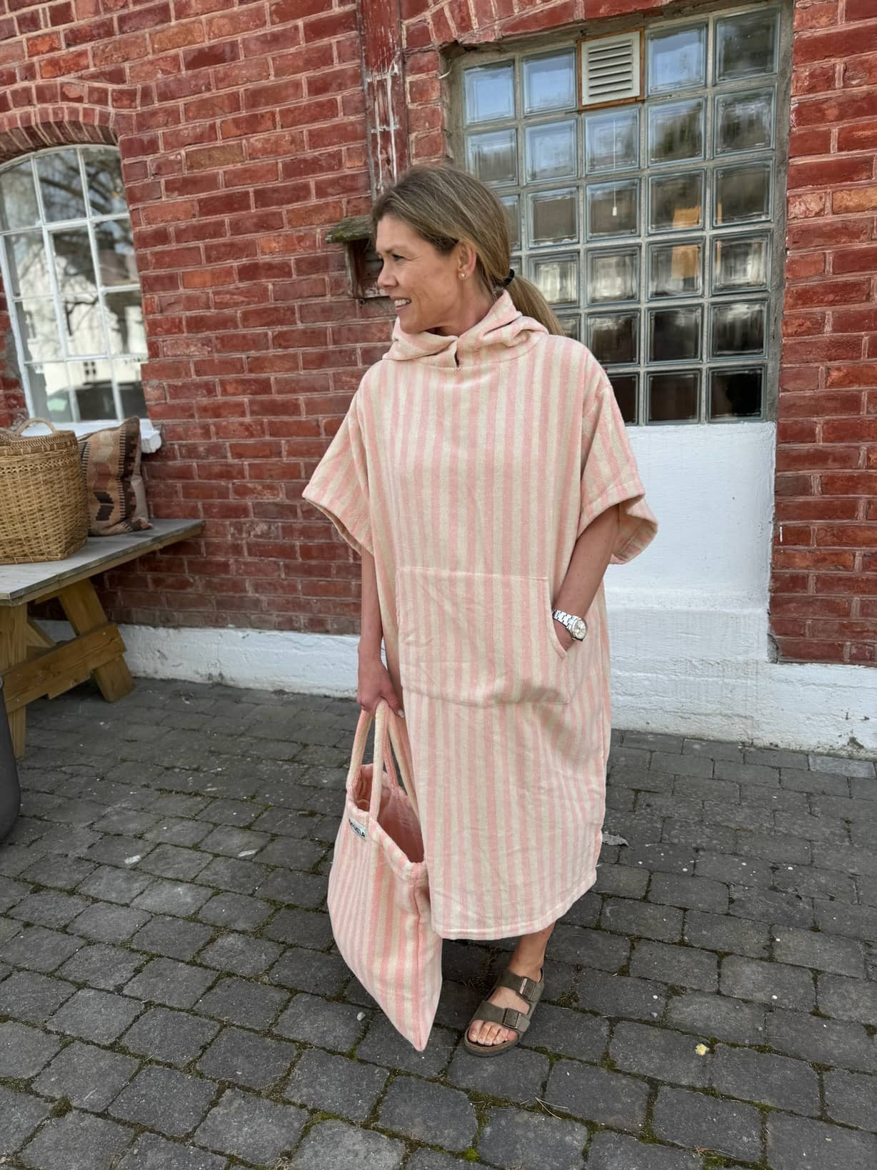 Naram Poncho er designet slik at du kan skifte våt badetøy under det, mens du holder deg dekket og varm etter svømmetrening eller etter en svømmetur på stranden. Det fungerer også enkelt som det ultimate koselige antrekket. Bare ta den på og du har det perfekte en-og-ferdige antrekket klart for hva som helst! Hetten er superpraktisk når du kommer deg ut av det kalde vannet, pluss at den store kenguru-frontlommen sikrer at du kan varme opp hendene eller oppbevare det nødvendigste.