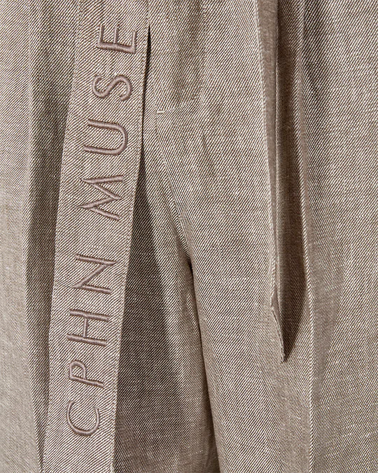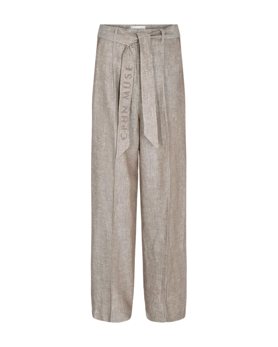 CMNATURE er en bukse med logotrykk på det brede midjebeltet og en elegant, løs passform.