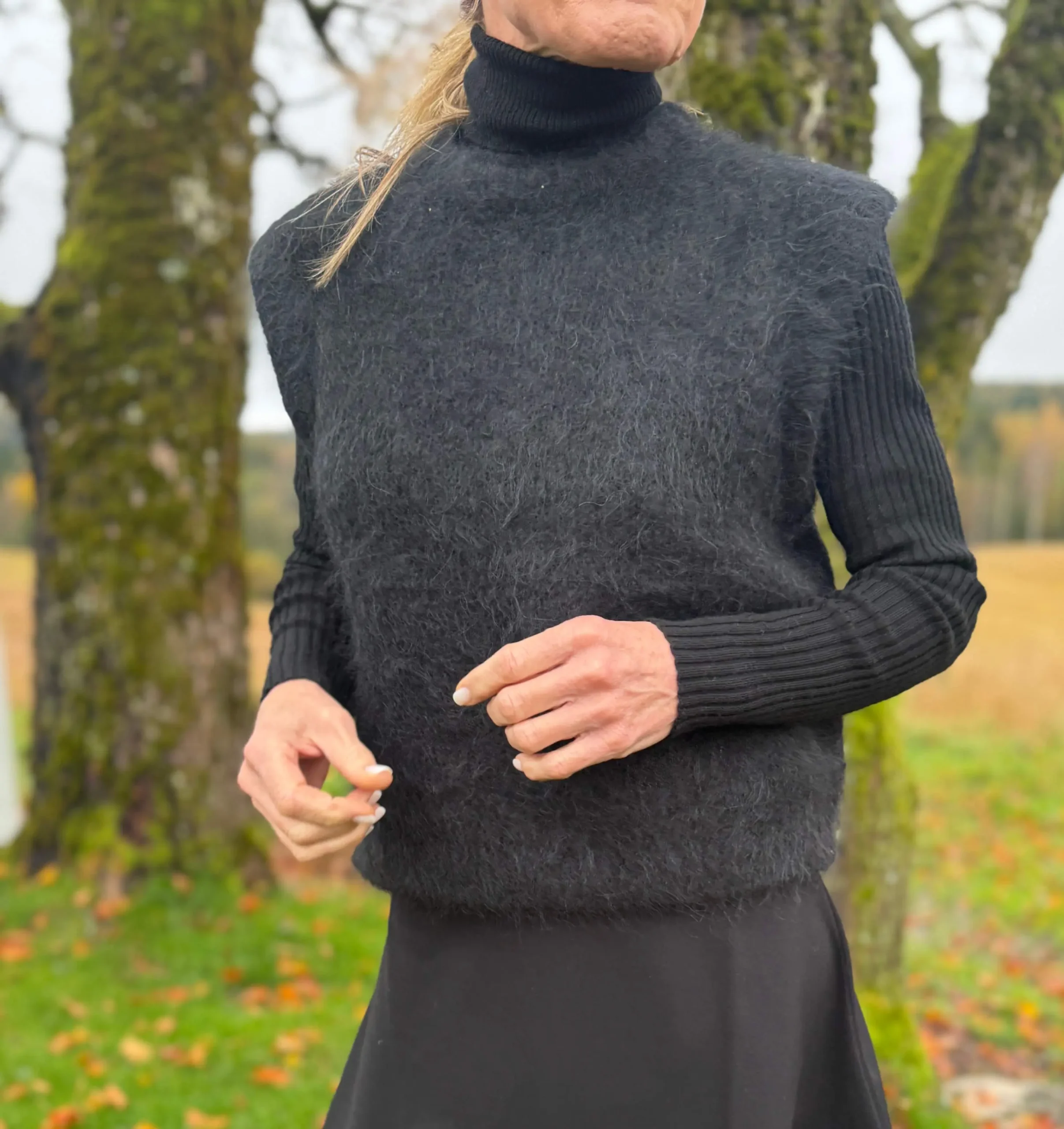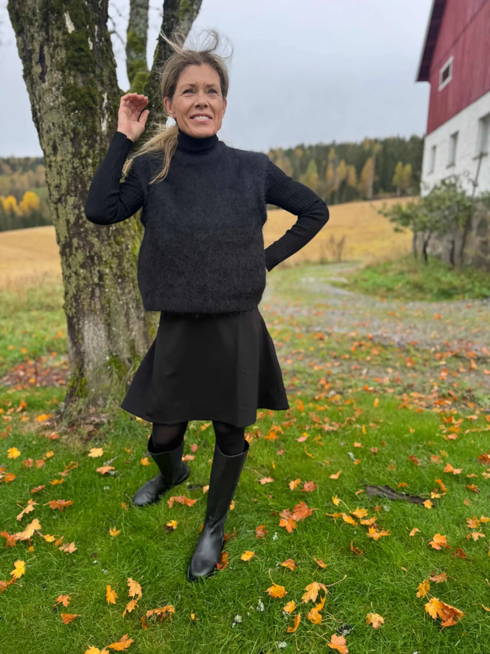 Niby Vest fra American Vintage er strikket i en luksuriøs alpakka-blanding som føles fantastisk mot huden. Den kommer i klassisk sort, har rund hals og en rett, tidløs passform. Bruk den alene for et enkelt uttrykk, eller som et perfekt lag-på-lag plagg.