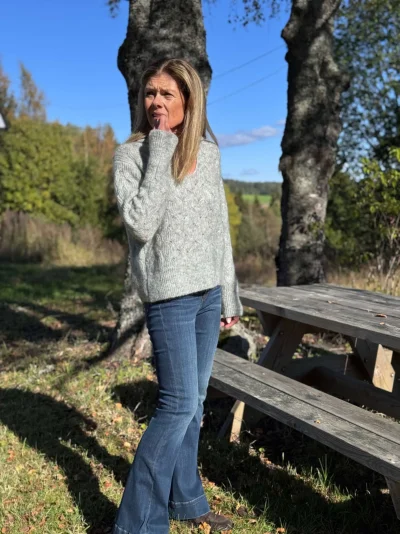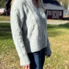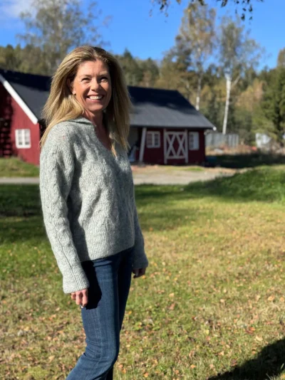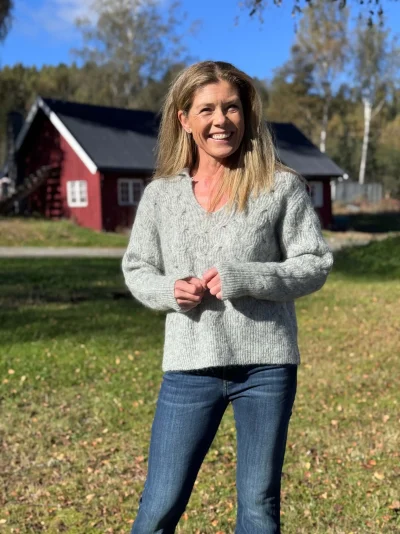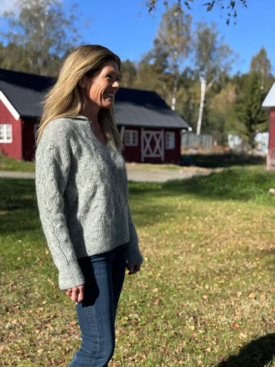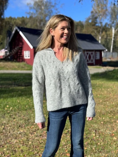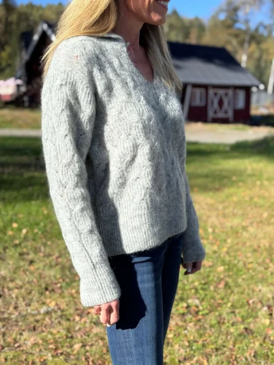 Myk og vakker genser med krage, nøkkelhullslukking og kabelstrikk. Tidløs og komfortabel – passer perfekt til både bukser og skjørt, til hverdags eller en kveld ute.