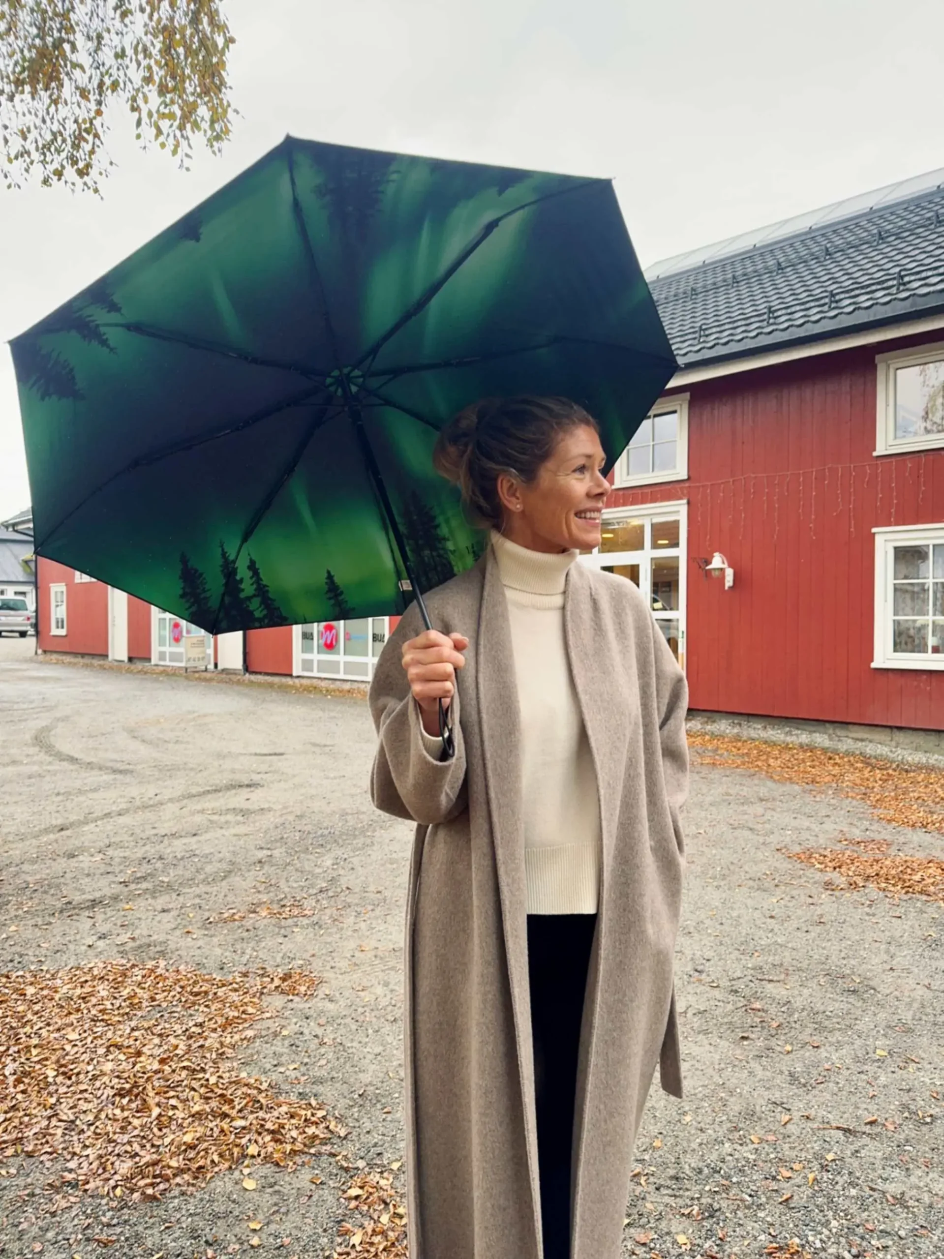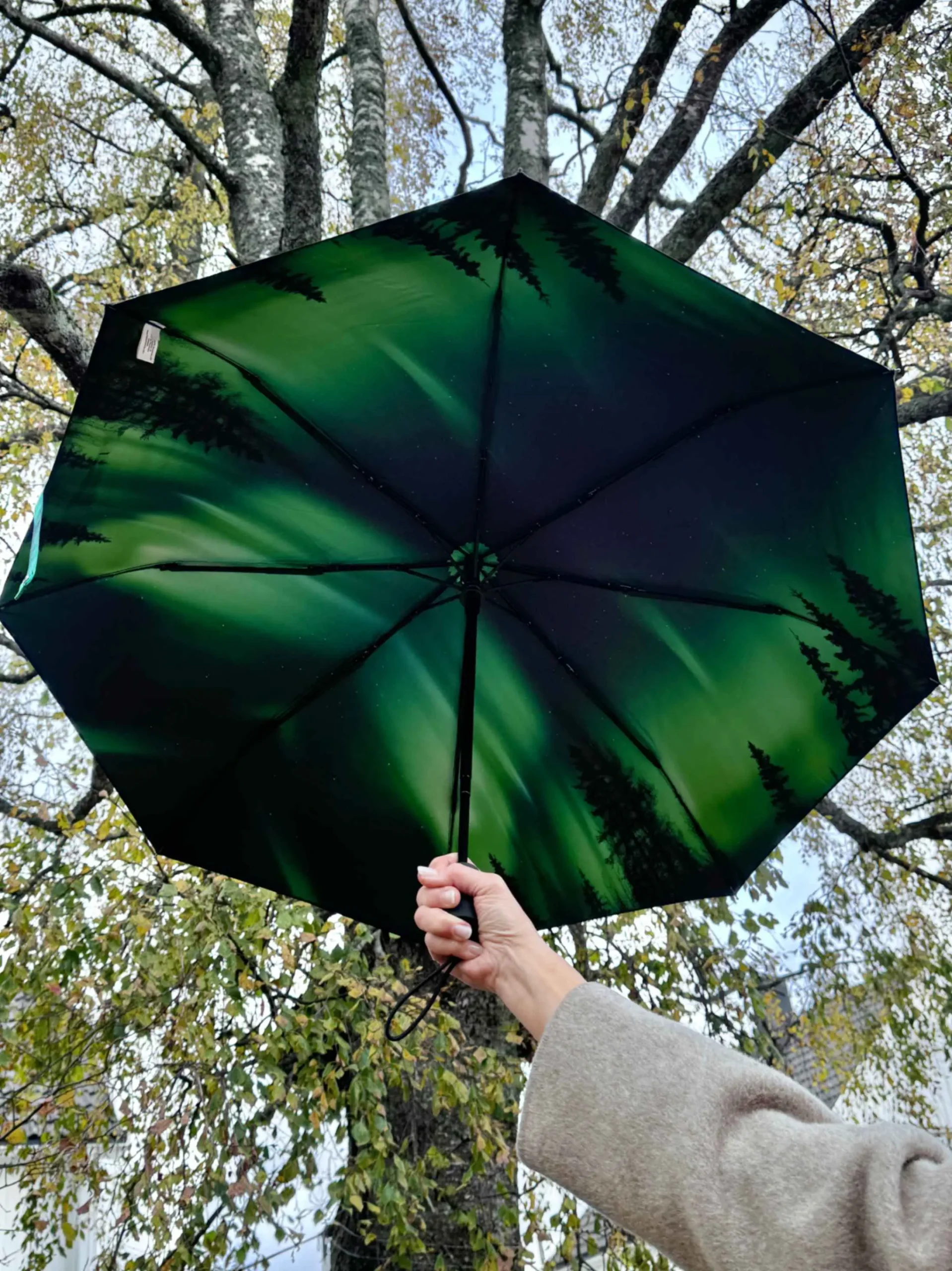 Beskytt deg mot vær og vind med vår kompakte Nordlys-paraply! Med UPF 50+ solbeskyttelse og vindtett design, holder den deg trygg i all slags vær. Paraplyen er helautomatisk og har et komfortabelt gummihåndtak med praktisk knapp for enkel åpning og lukking.