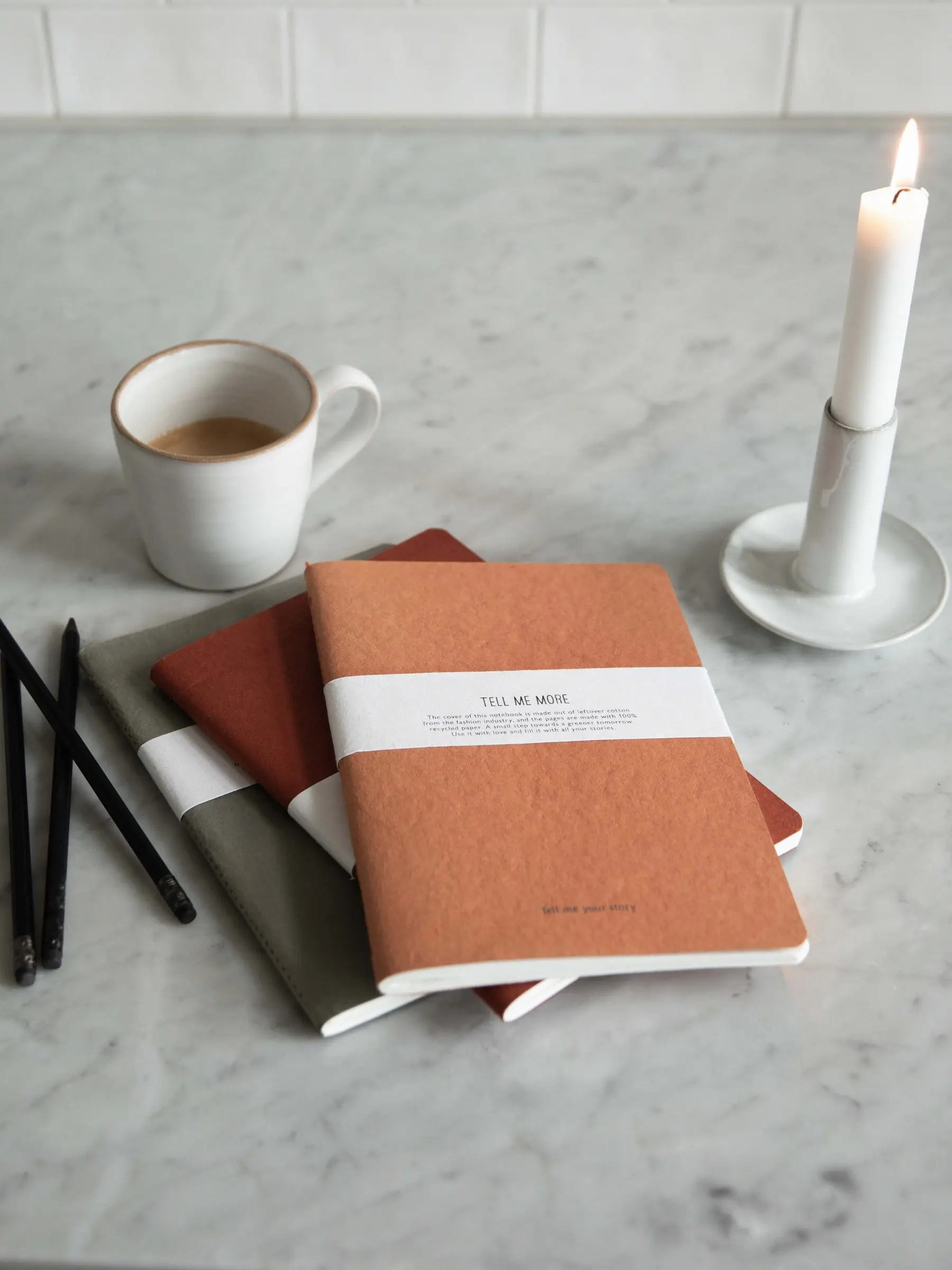 Vakker trådbundet notatbok med et omslag laget av restbomull fra moteindustrien. Med 36 blanke sider i 100% resirkulert papir, er den ideell for å skrive ned både lange og korte notater. Stilfull og miljøvennlig, perfekt for å fange dine tanker og ideer.