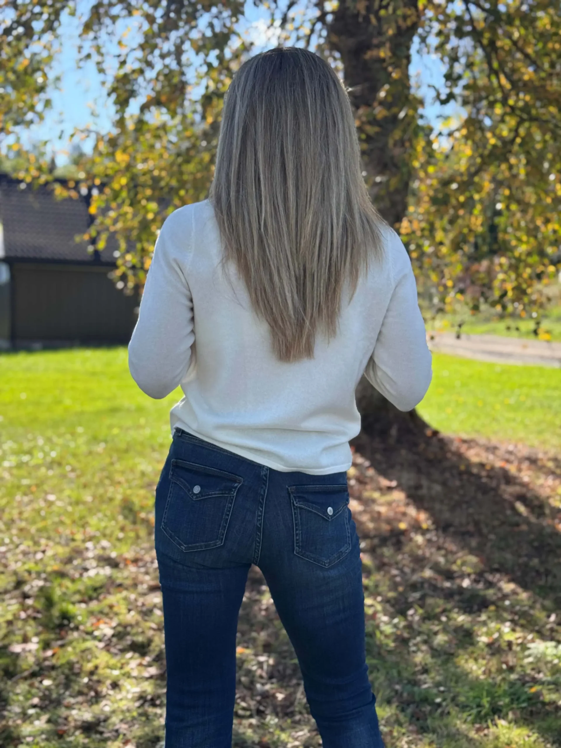 Helt ny og supertrendy modell fra Denim Studio! Den har den karakteristiske brede oppbretten vi kjenner fra JIM, kombinert med stilige baklommer med knapp. Akkurat slik skal buksene se ut denne høsten!