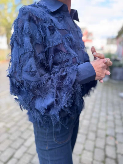 Pandora-skjorten gir klassisk skjortestil et kunstnerisk preg. Laget i crisp bomull med teksturerte sirkeldetaljer som leker med lys og skygge. Skarp krage, knappestolpe og lange ermer med mansjetter gir balanse mellom struktur og flyt. En tidløs og moderne statement-skjorte.