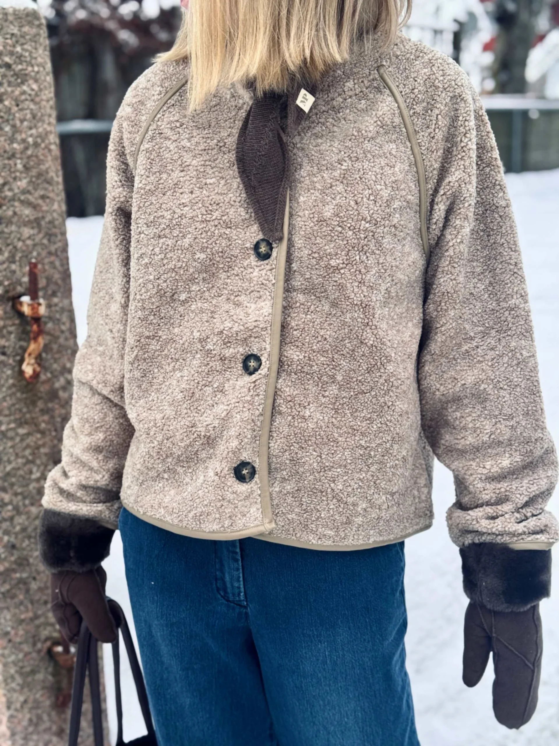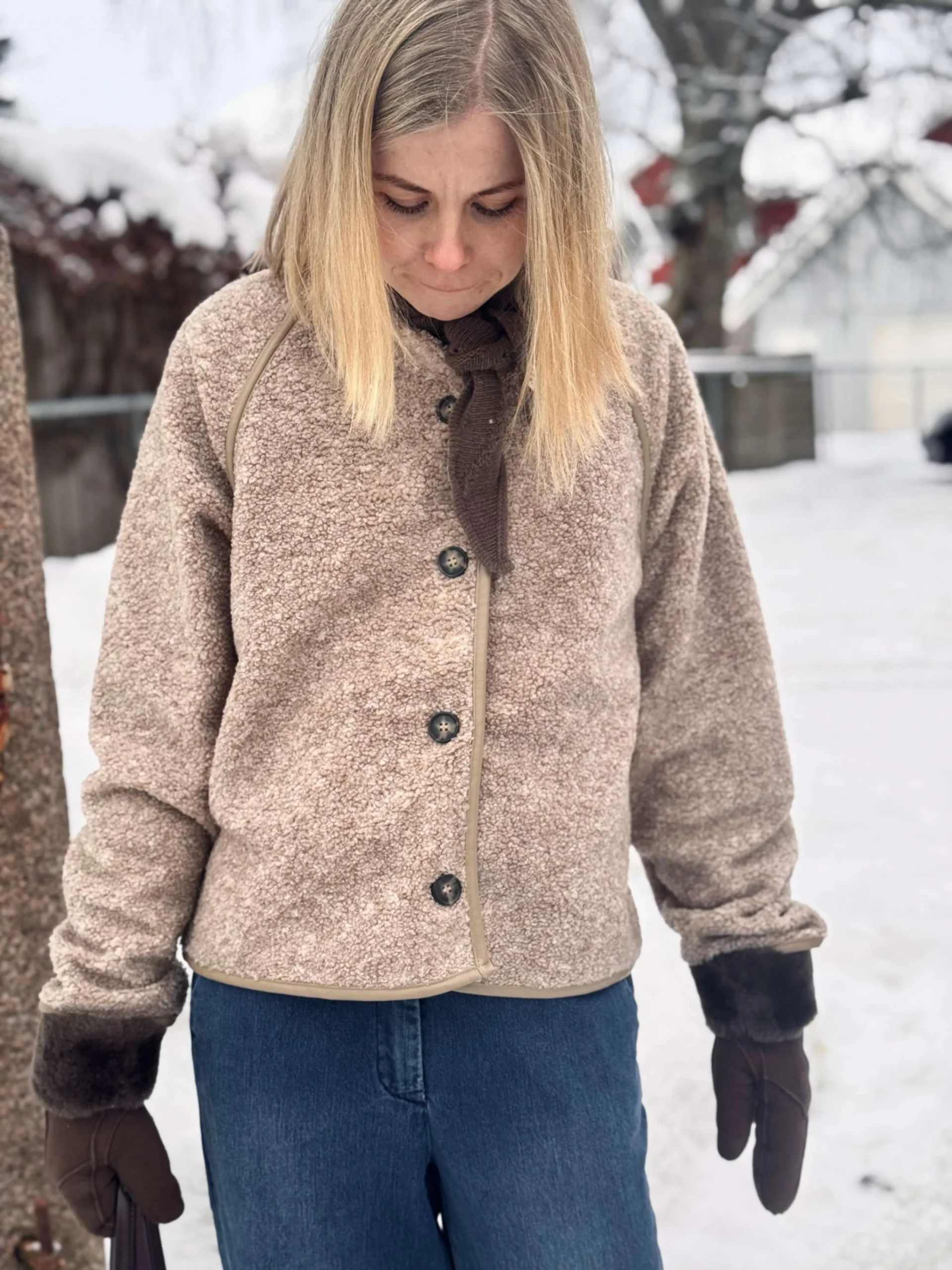 Komfortabel og moderne jakke i en elegant beige farge, laget av 100 % polyester. Jakken har et strukturert stoff, knappelukking og en mykt avrundet krage som gir et stilrent uttrykk. Style den med jeans for en avslappet look, eller med et elegant skjørt for et mer pyntet antrekk.