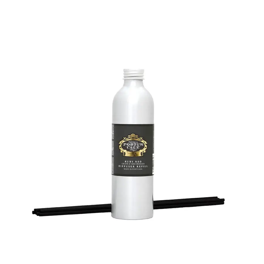 En elegant og fruktig blanding av druer og røde frukter. Portus Cale Ruby Red 250mL Parfyme Refill lar deg dufte favoritt din på nytt med denne forfriskende duften. Kompatibel med Castelbel og Portus Cale diffuser. Parfymen er alkoholfri og har en tykk base med eteriske oljer; dette gjør at duften varer lenger. Sorte pinner inkludert.