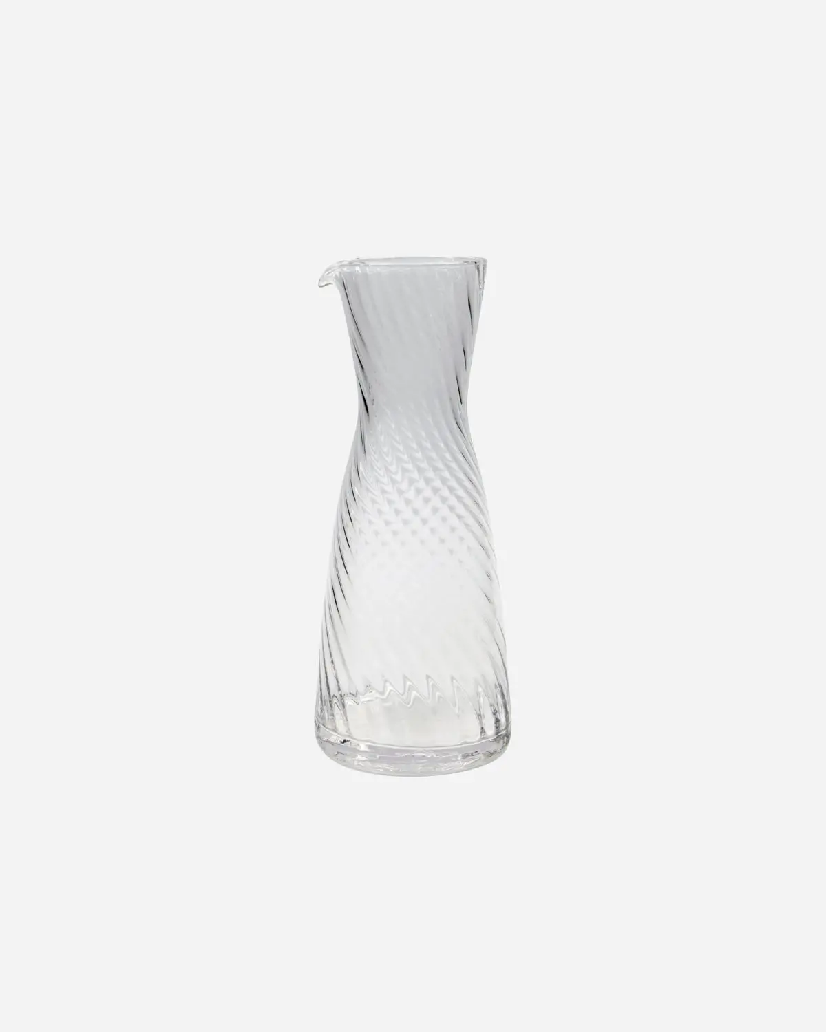 Denne karaffelen i rillet, transparent glass er perfekt til å servere vann, juice eller vin. Den gir et snev av eleganse til ethvert middagsbord. Den klare designen passer sømløst inn i ulike borddekninger og tilfører eleganse til dine sammenkomster.