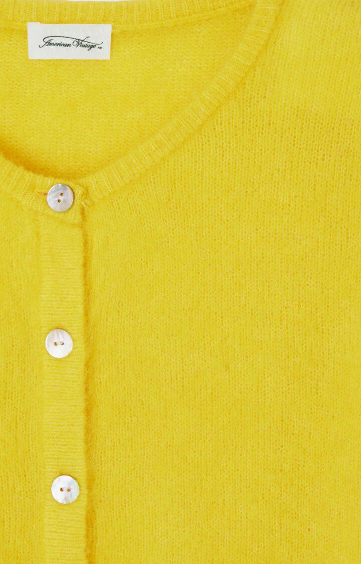 Knalltøff og god cardigan fra American Vintage. Den har knapper i front, lange ermer, lav skuldersøm og avslappet passform. Like fin å bruke åpen eller lukket som en genser.
