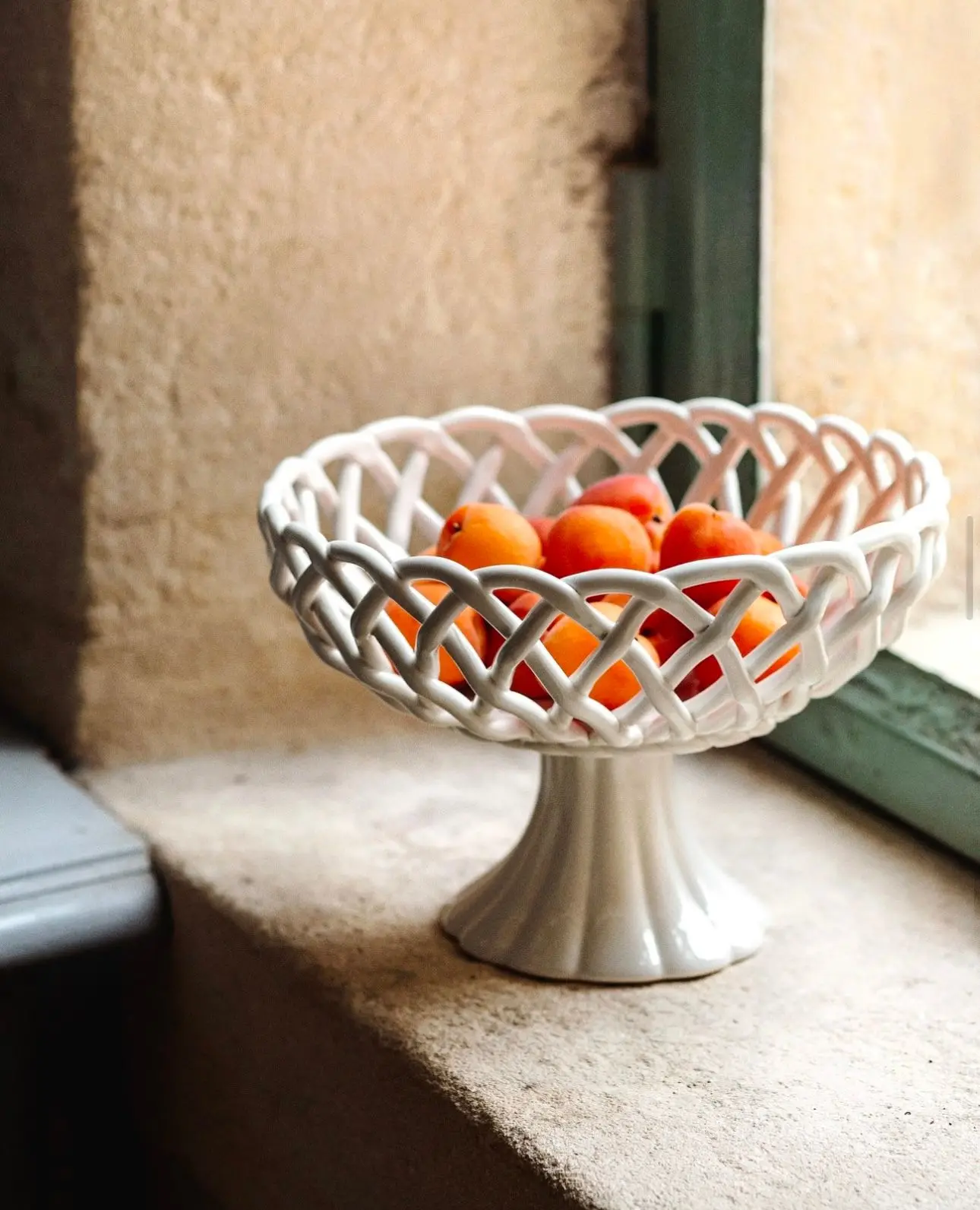 Denne håndlagde dekorative hvite porselenskurven er løftet (bokstavelig talt) med en elegant fot. Bruk den til å vise frem alt fra frukt til brød og bakst. Alternativt kan du la den stå tom for å virkelig sette pris på det delikate kurvvevde designet. En vakker og tidløs detalj til hjemmet ditt.