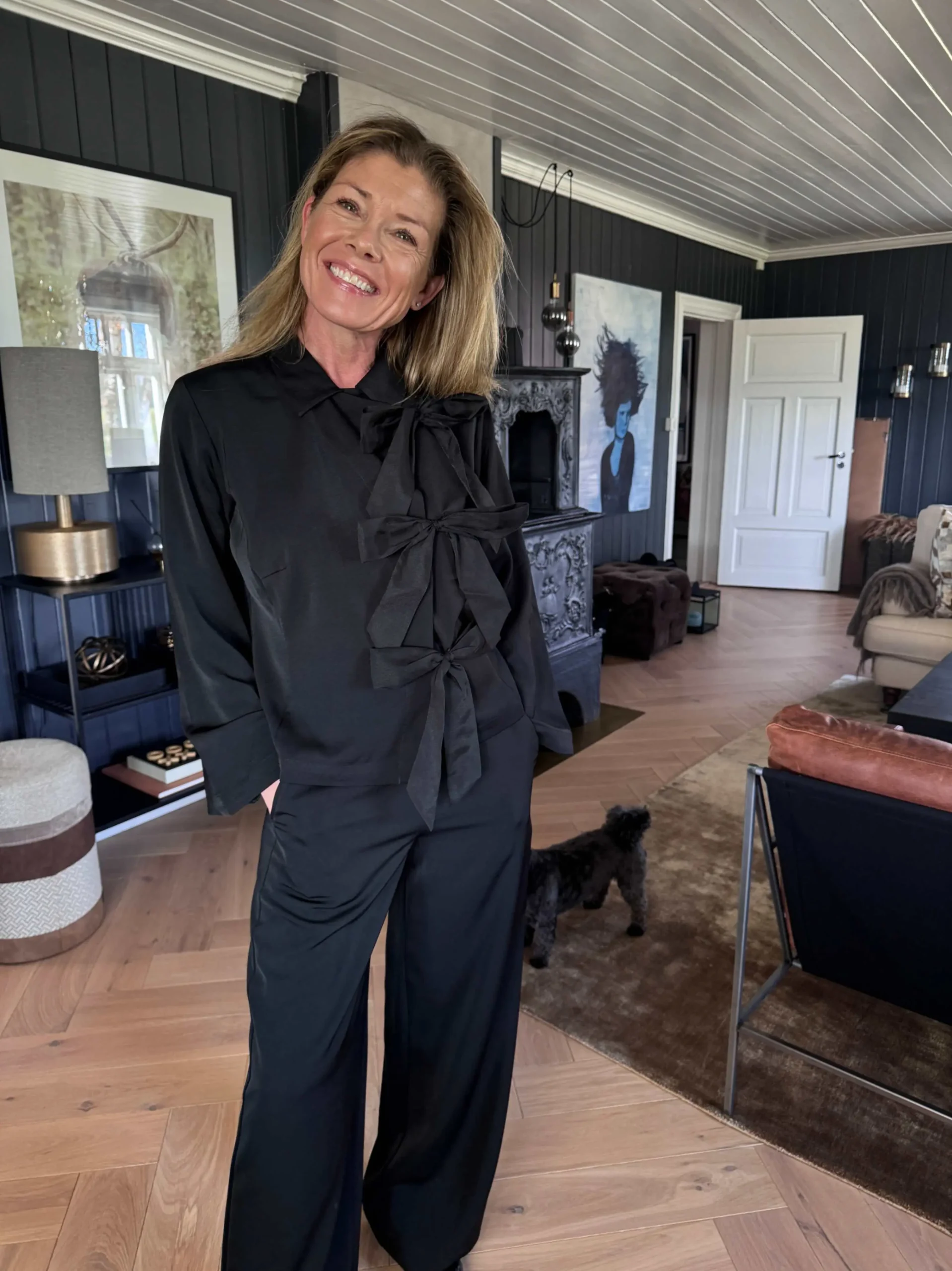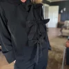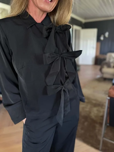 Nydelig jakke med store sløyfer som lukking, som gir et elegant preg. Jakken løfter enhver enkel kjole, og tilfører et feminint preg til både bukser og skjørt. Et stilfullt og tidløst tillegg til garderoben.
