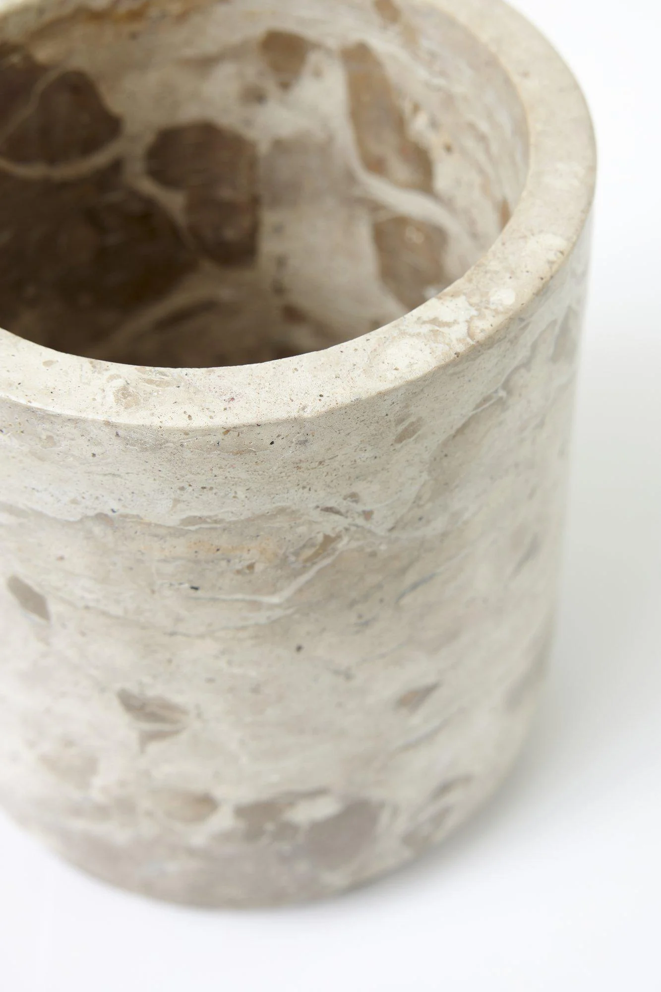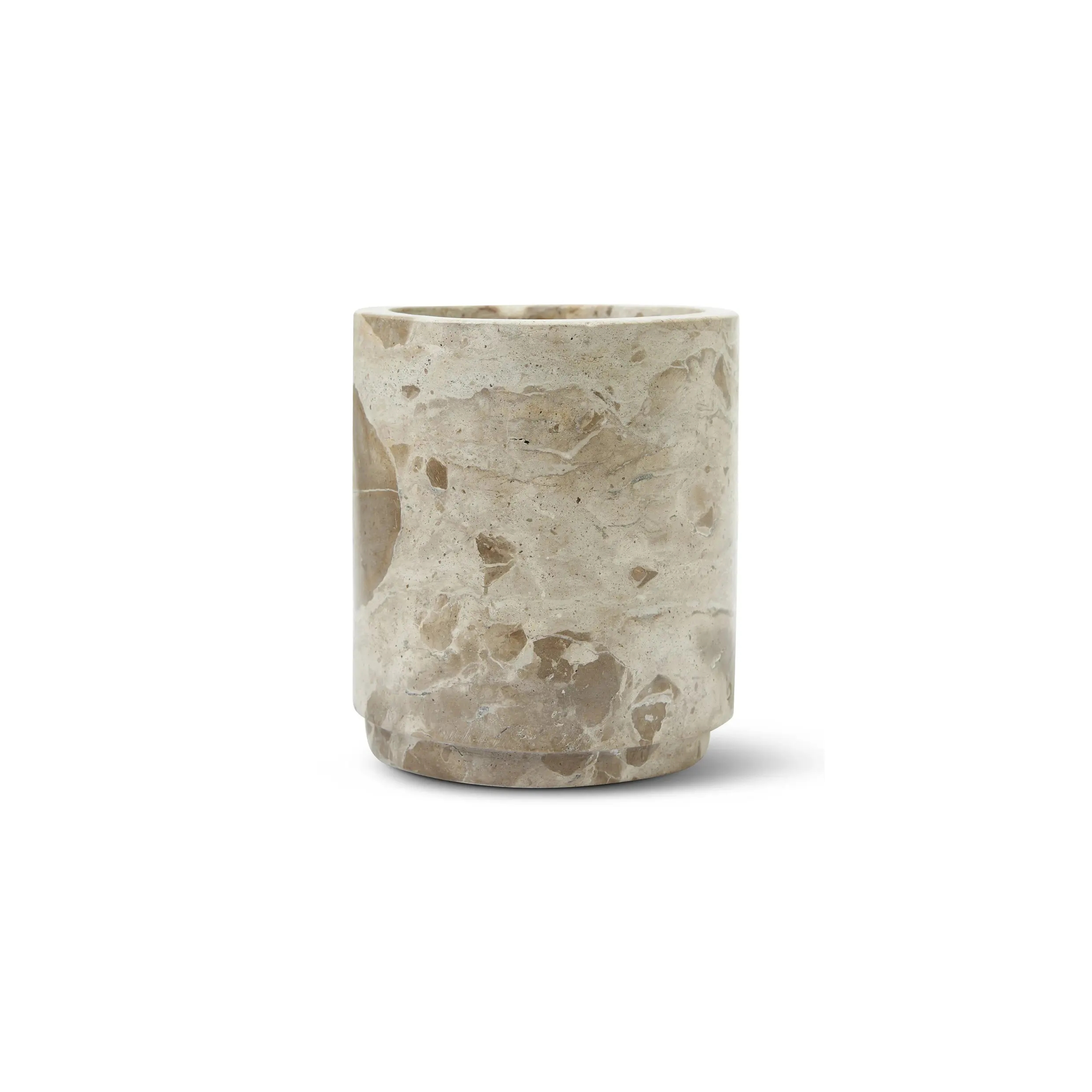 Vår elegante runde beholder i ekte marmor, kjent som Samara, er ikke bare en funksjonell oppbevarings løsning, men også en eksklusiv interiør detalj som hever hjemmet ditt. Med sin naturlige skjønnhet og tidløse design er Samara-beholderen den perfekte måten å organisere og oppbevare kjøkkenutstyret eller andre gjenstander med stil og eleganse.