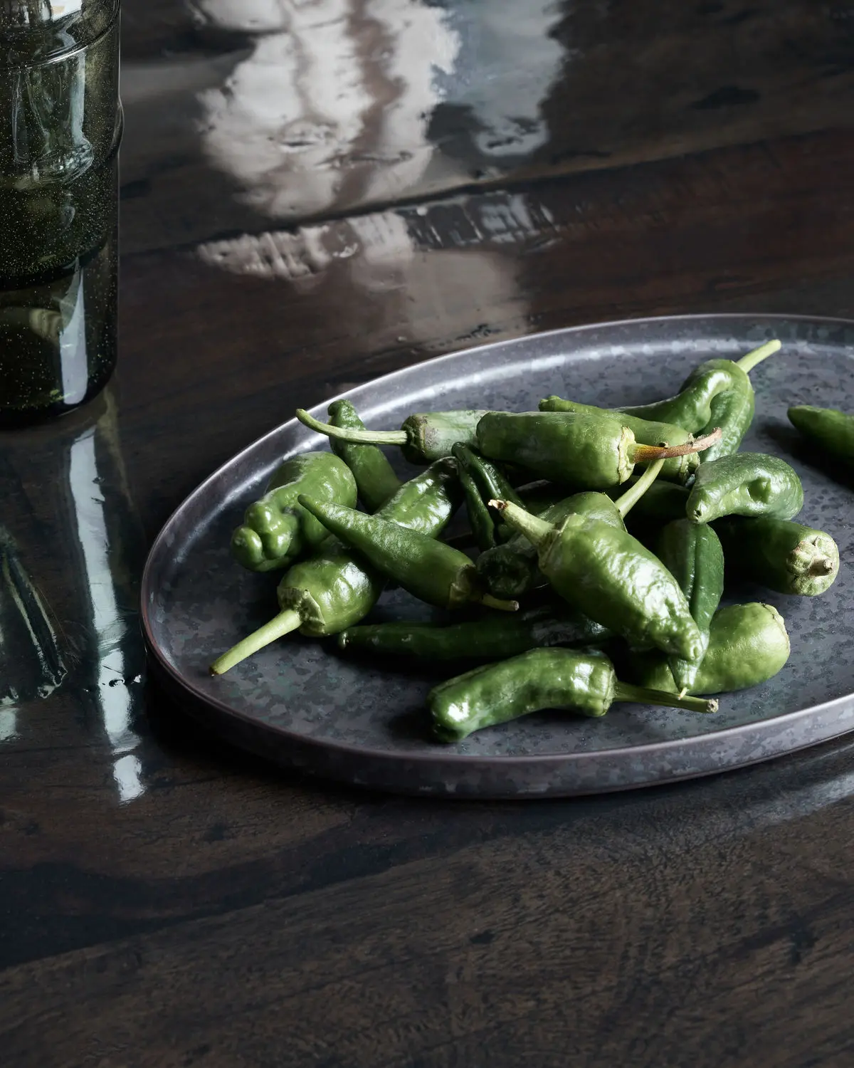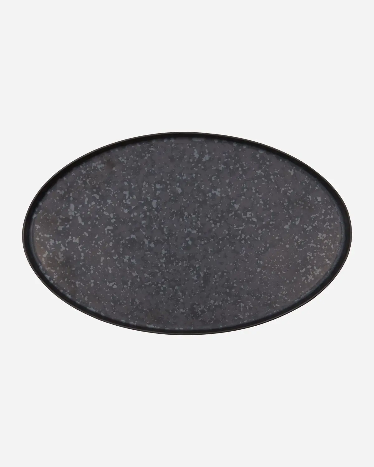 Flott ovalt serveringsfatet. Alt fra salat til grønnsaker og kakestykker vil ta seg flott ut på dette steintøysfatet i et uformelt design med en svart, reaktiv glasur. På grunn av glasurens matte tekstur kan det oppstå riper over tid. Men, dette gjør at det rustikke designet rett og slett bare blir enda mer sjarmerende.