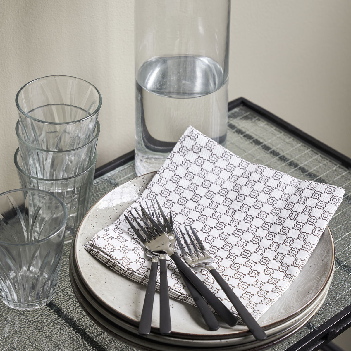 Grid er en pakke med 40 servietter med et brunt mønster. Denne jordtonen passer til både uformelle og formelle anledninger. Hold den til den lyse siden med et hvitt eller beige servise, eller dekk et rustikt bord med forskjellige nyanser i brunt.