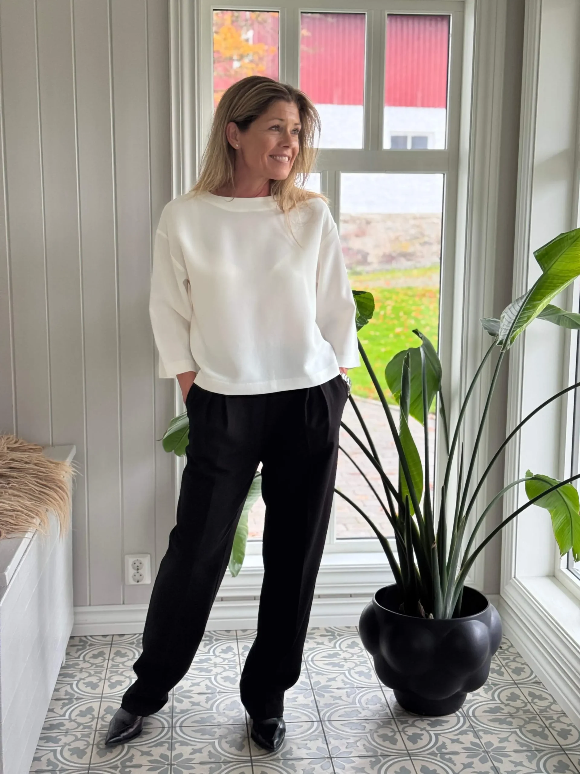 Sia Top har et enkelt og elegant design. Den rette, korte fasongen og de vide ermene gir et moderne preg. Et allsidig plagg som passer like godt til bukser som til skjørt.
