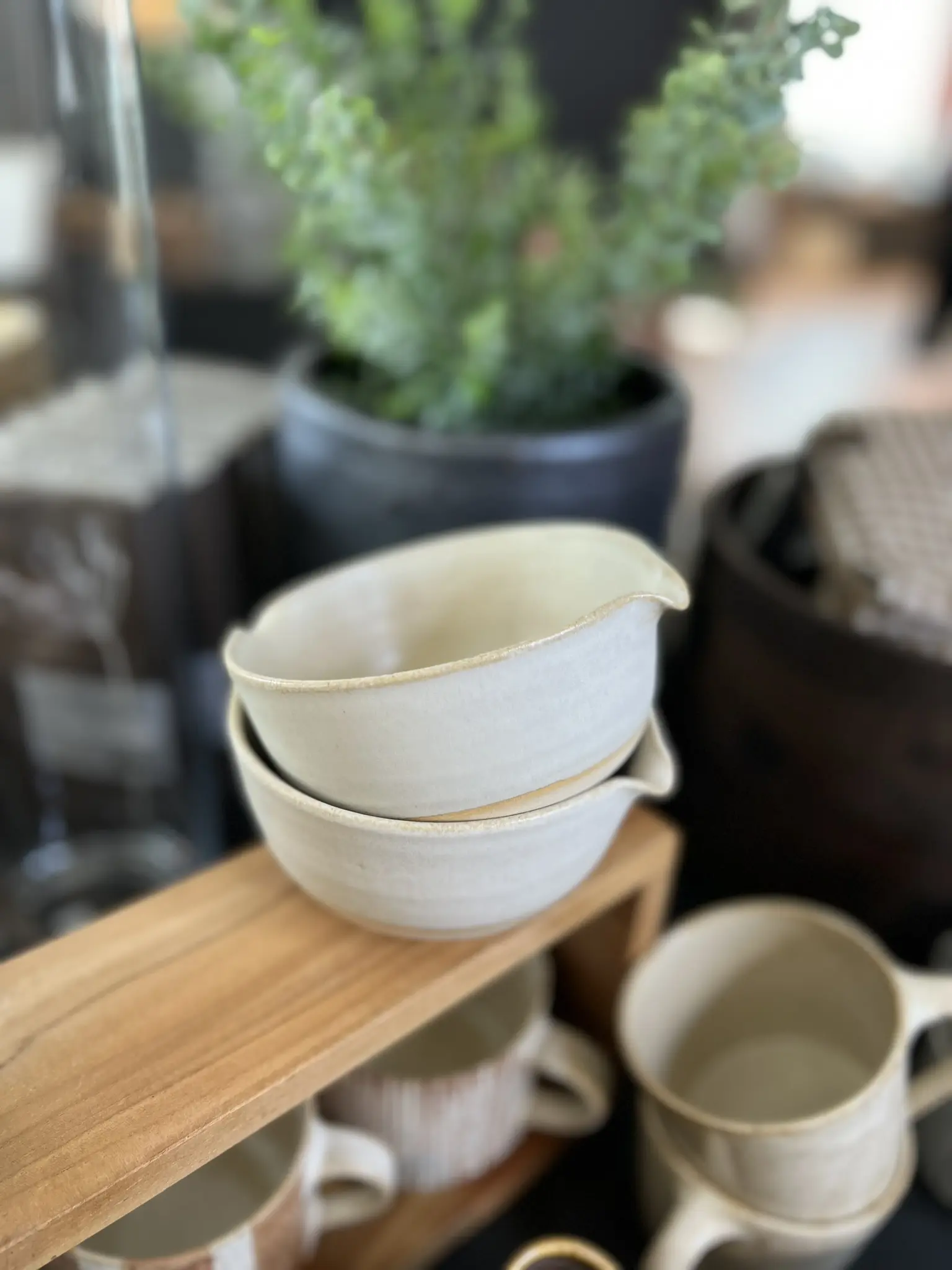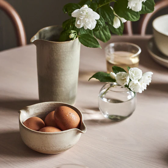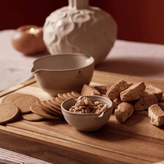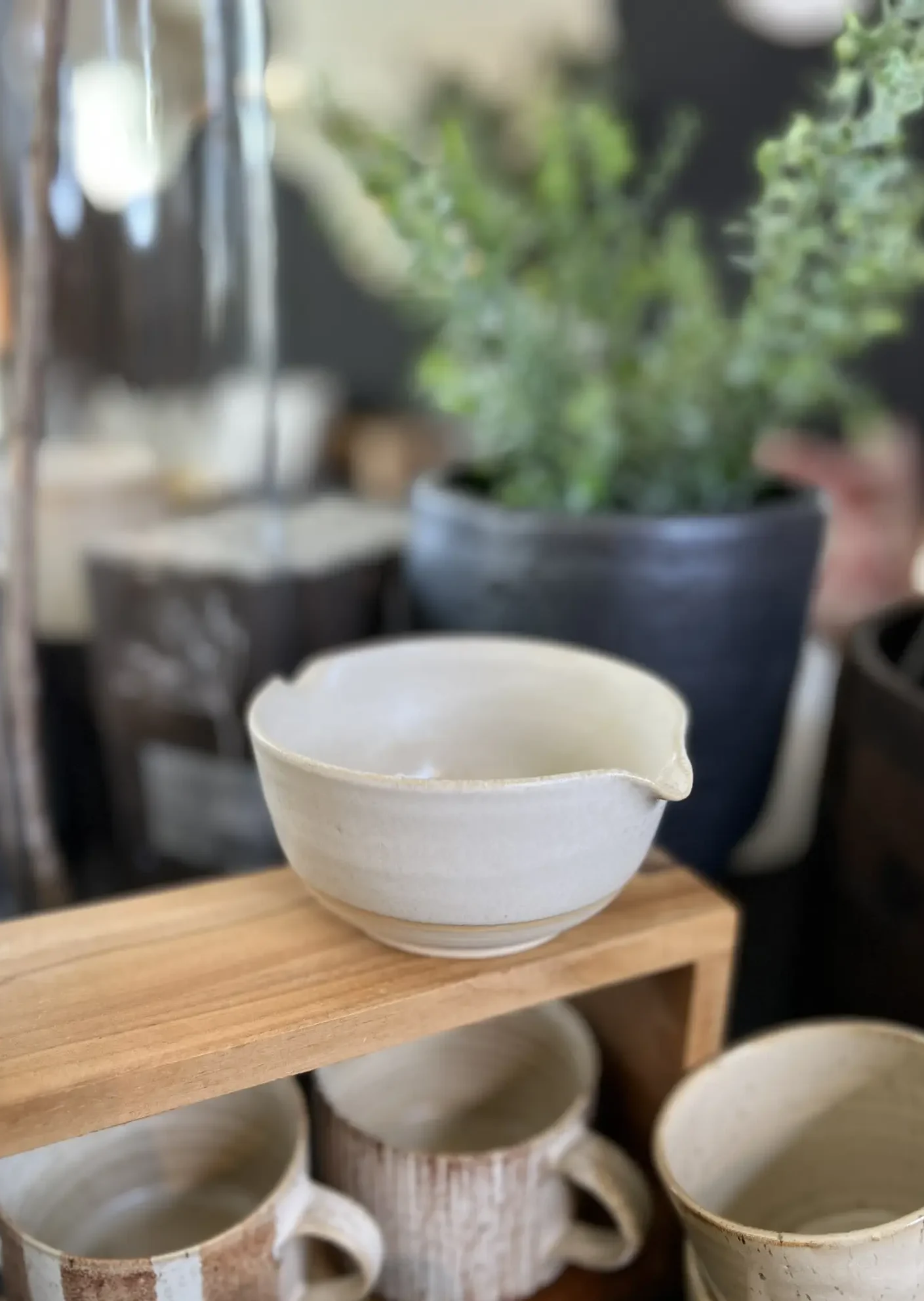 Vakker, rustikk hånddrei skål i steintøy som rommer ca 0,2 liter. Fin å tilberede og servere mat i, perfekt størrelse for snacks.