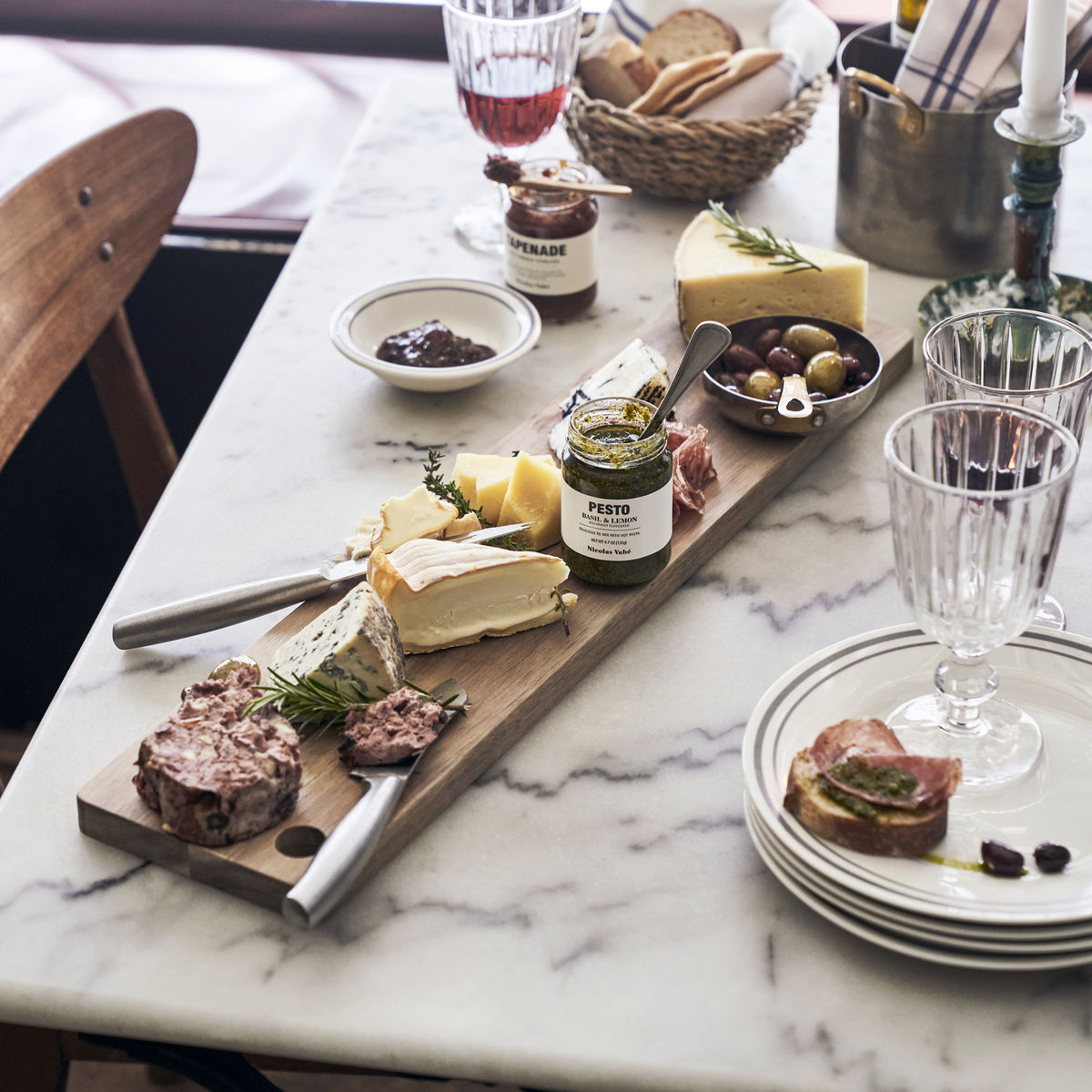 Skjærebrettet fra Nicolas Vahé som også egner seg godt til å servere for eksempel tapas på! Det er laget av solide akasietreet som også gir en varm glød til borddekkingen.