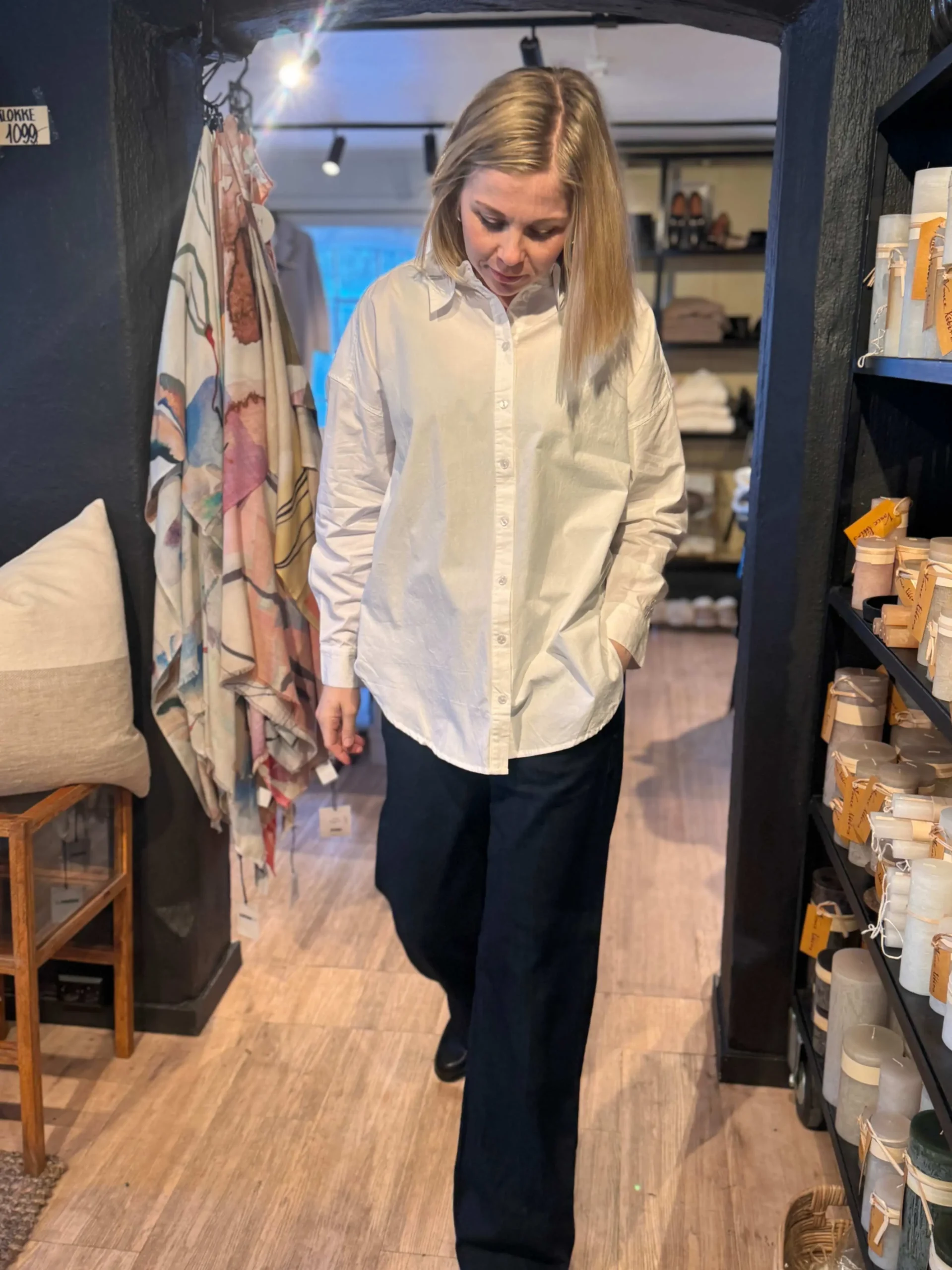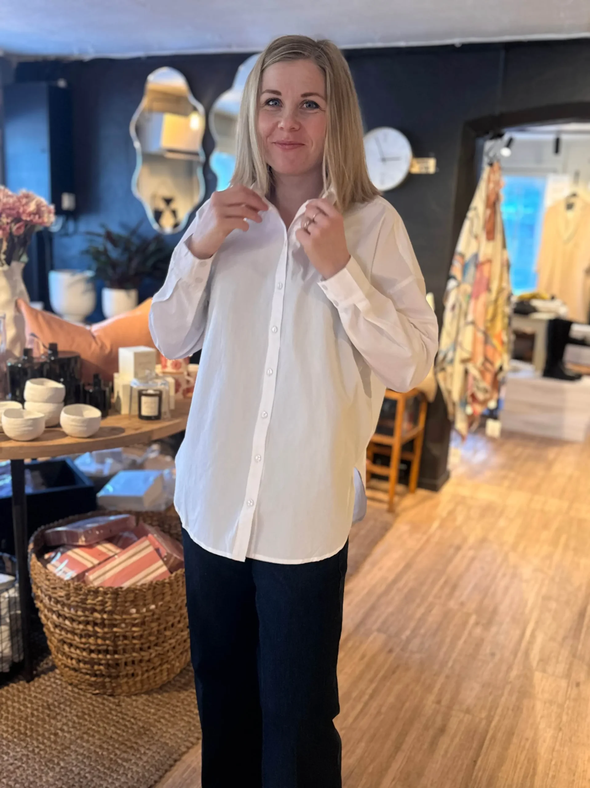 Boxy shirt fra My Essential Wardrobe er en klassisk hvit skjorte med overzied passform. En allsidig, trendy og elegant skjorte som lett kan kombineres med andre plagg.