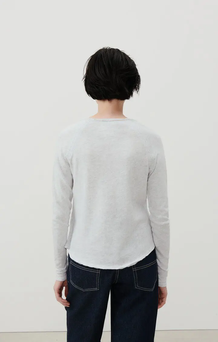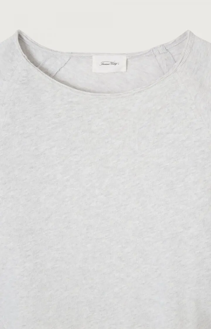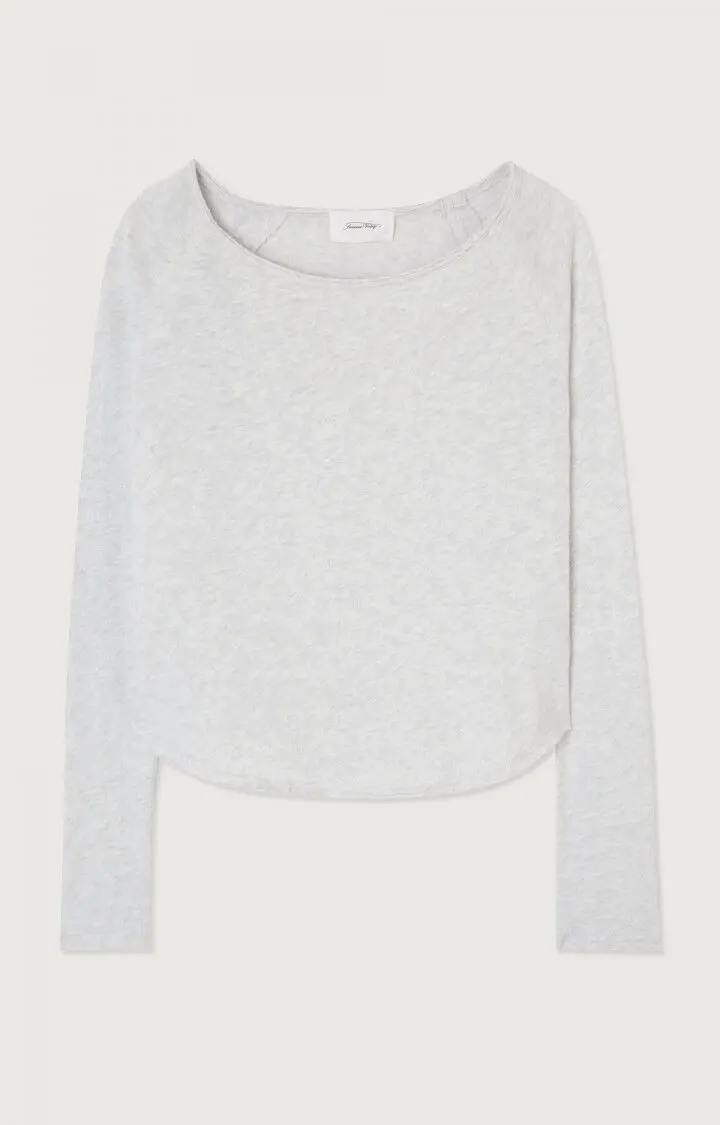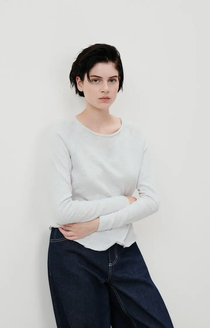 Grå og enkel genser fra American Vintage i god bomullskvalitet – perfekt til basegarderoben. Genseren har et rett snitt, båthals og rå kant rundt halsen.