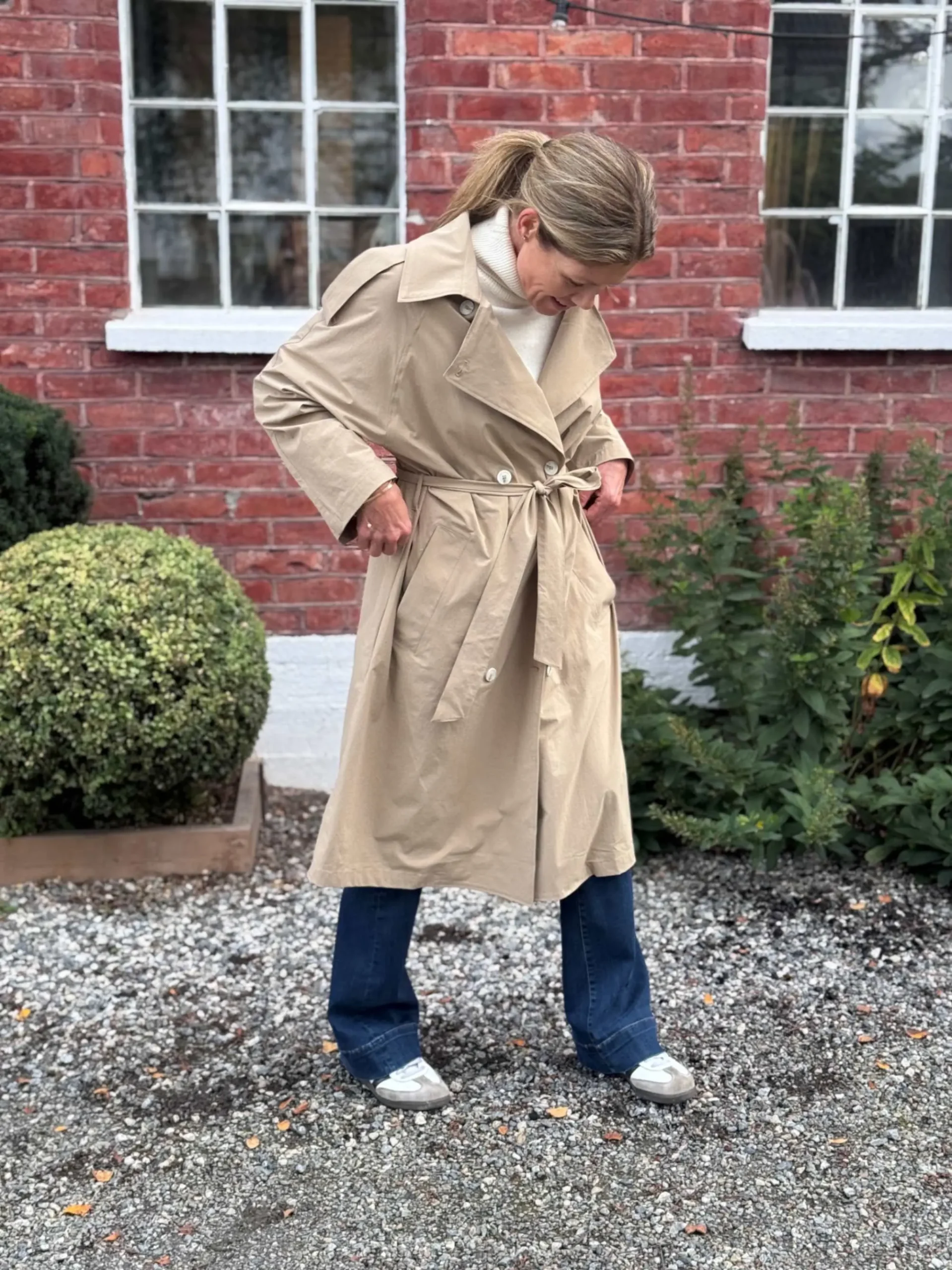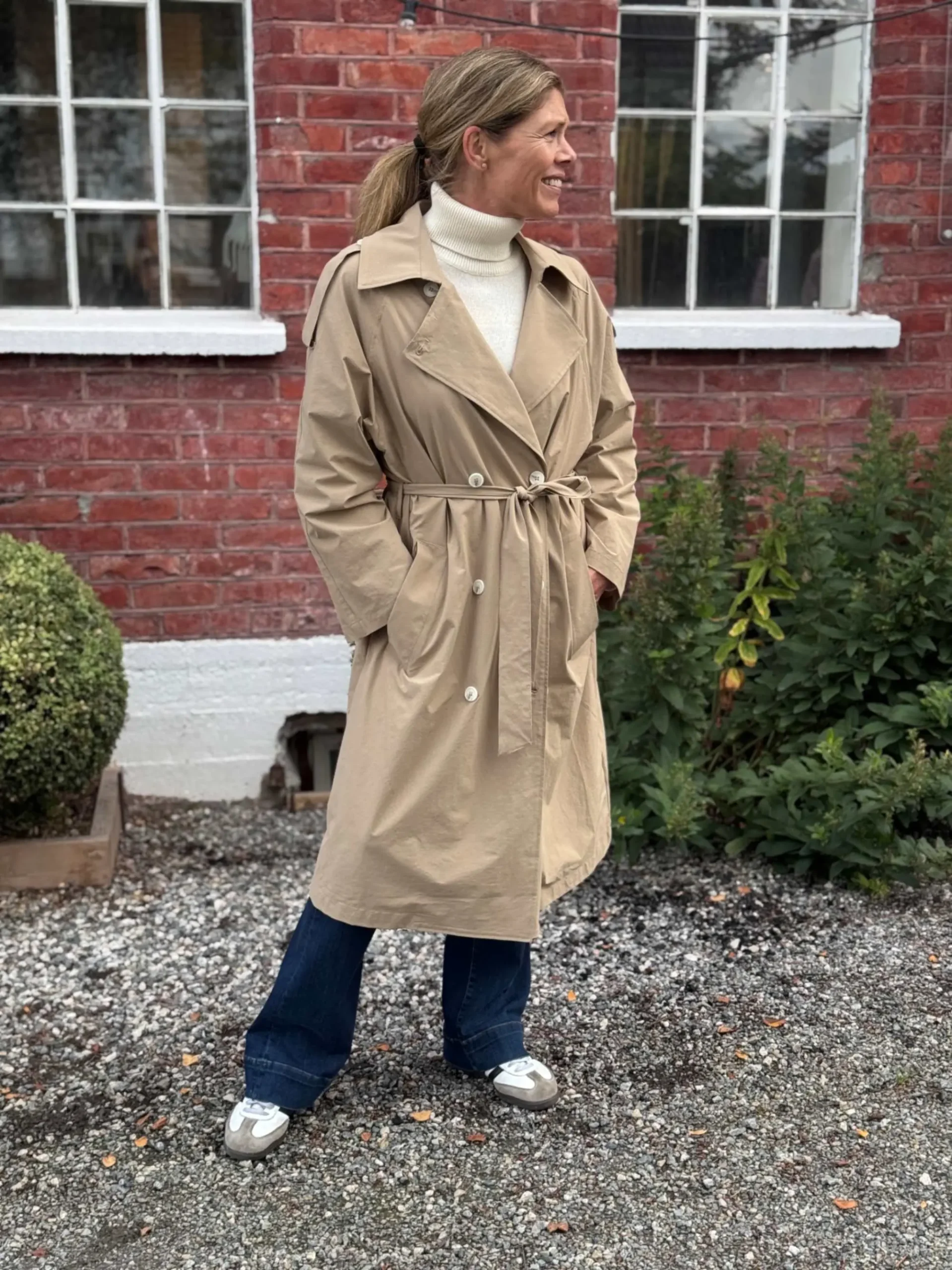 Oppgrader høstgarderoben med denne lekre trenchcoaten fra One & Other. Den tidløse camel-fargen kombinert med dobbel knappelukking og avtagbart belte gir et eksklusivt uttrykk. Den oversized passformen gjør den både trendy og behagelig – en jakke som løfter ethvert antrekk.
