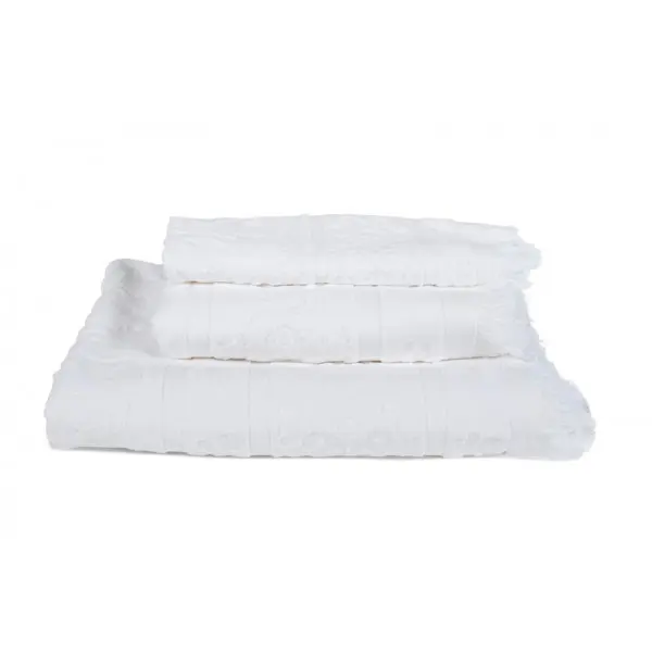 Fine håndklær med lekkert mønster pynter opp på badet.