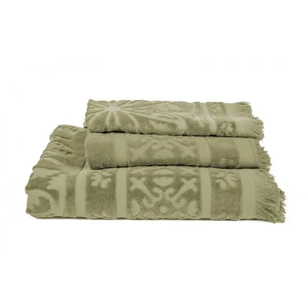 Fine håndklær med lekkert mønster pynter opp på badet.
