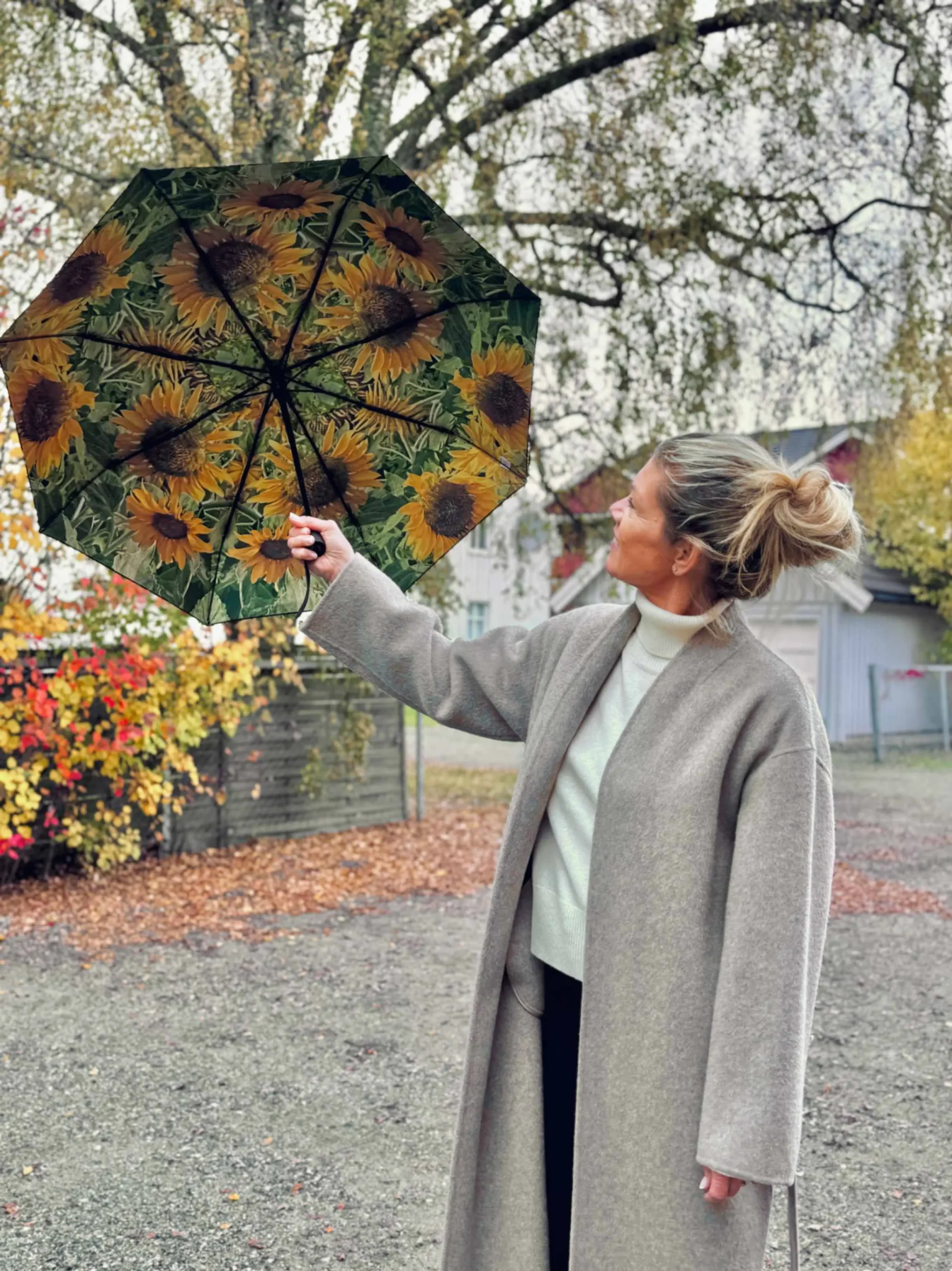 Beskytt deg mot vær og vind med vår kompakte Sunflower-paraply! Med UPF 50+ solbeskyttelse og vindtett design, holder den deg trygg i all slags vær. Paraplyen er helautomatisk og har et komfortabelt gummihåndtak med praktisk knapp for enkel åpning og lukking.