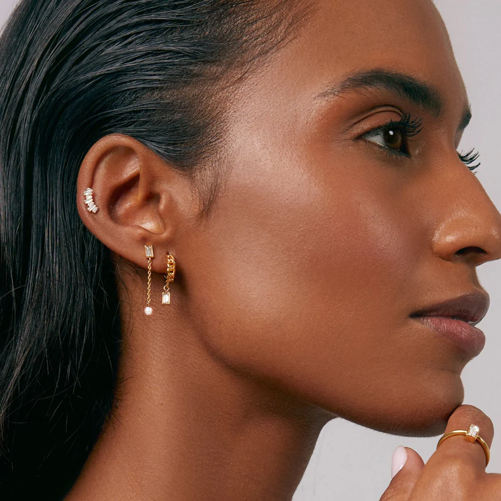 Sw Baguette & Chain Huggie Hoops fra Orelia. Nydelige chain-hoops med vakre baguette-formede Swarovski®-krystaller. Like fine til hverdags som til fest.