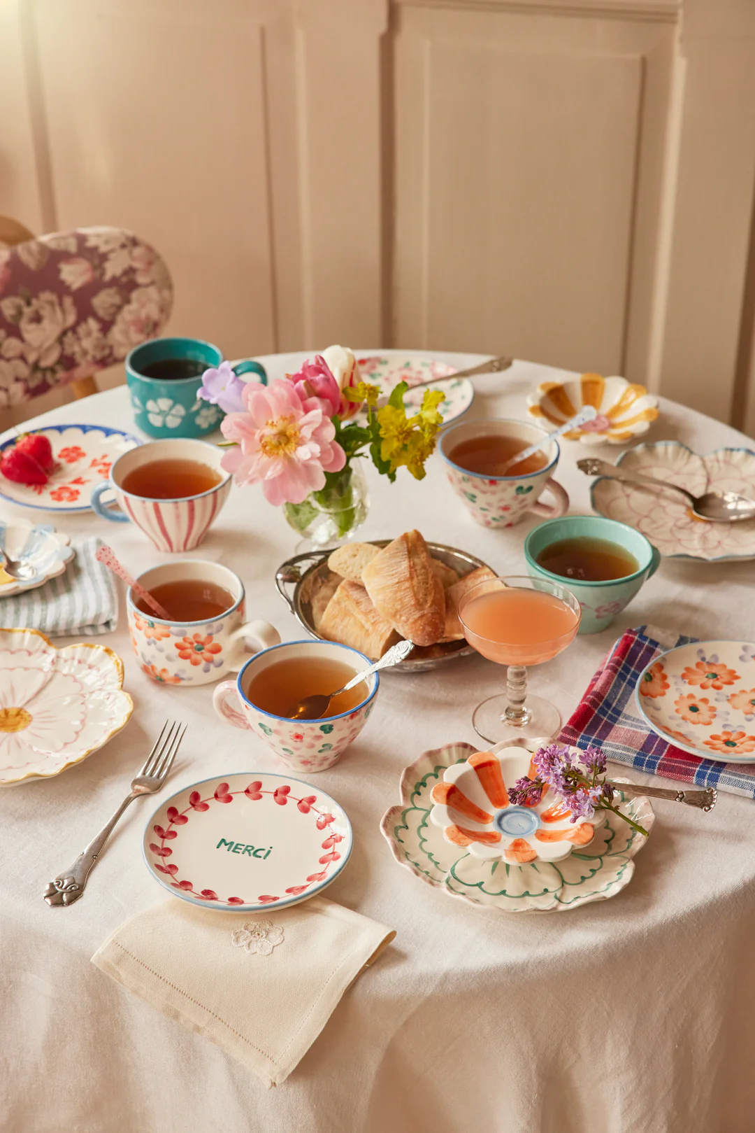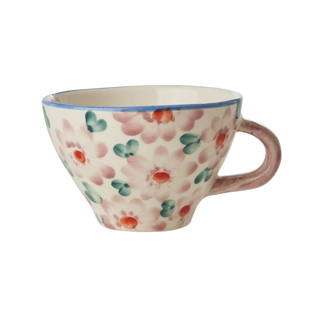 Nyt et deilig ettermiddagste i denne skjønne tekoppen med rosa blomster. Koppen er håndmalt og hver kopp er derfor helt unik, og vi synes den er utrolig sjarmerende!