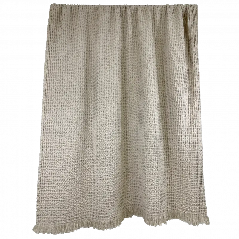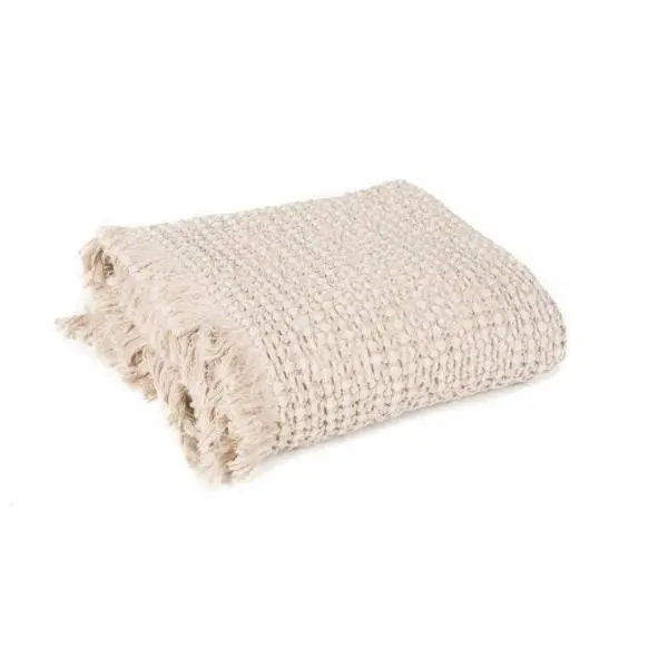 Vaffel mønstret teppe i nydelig linfarge. 100% bomull.