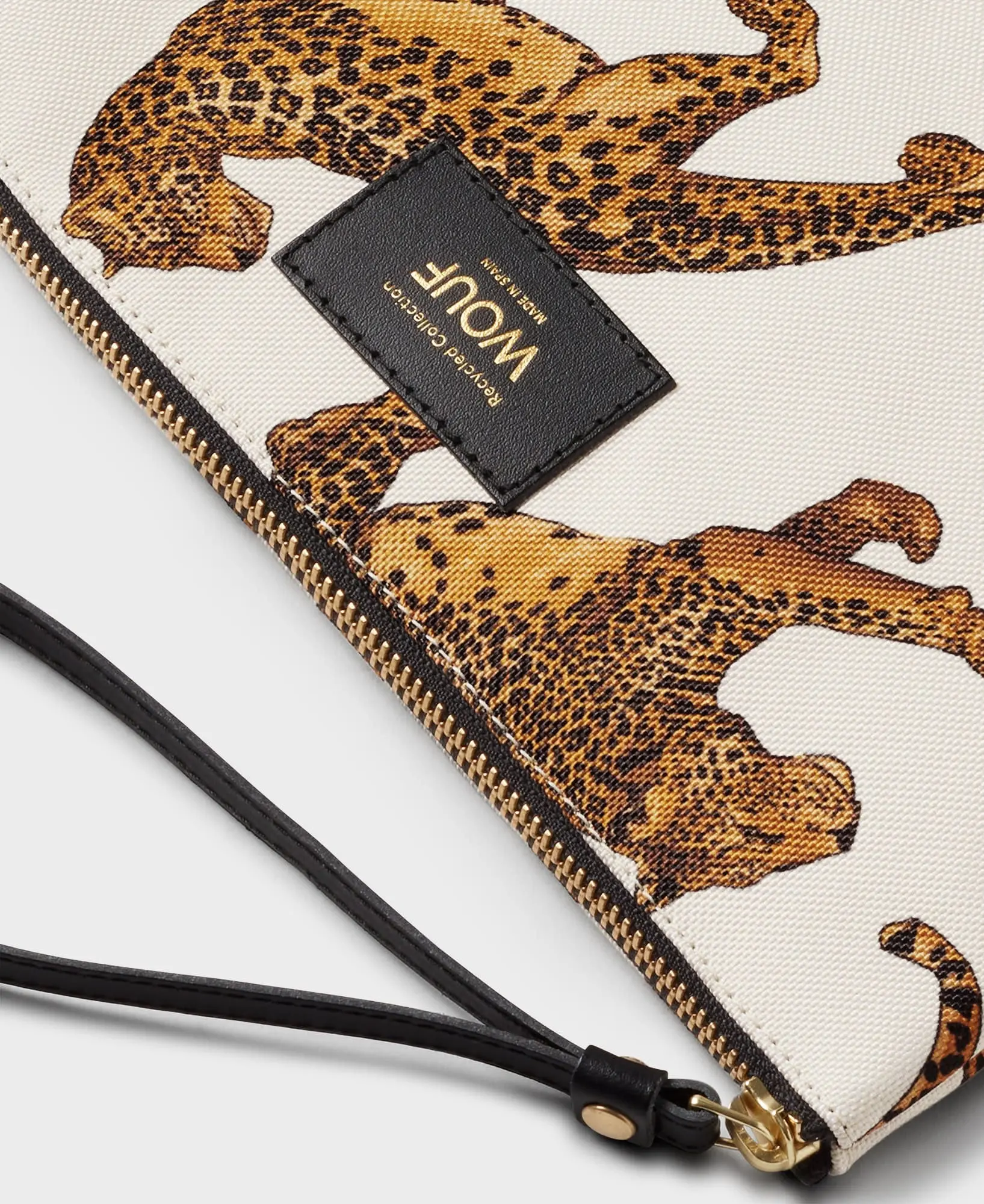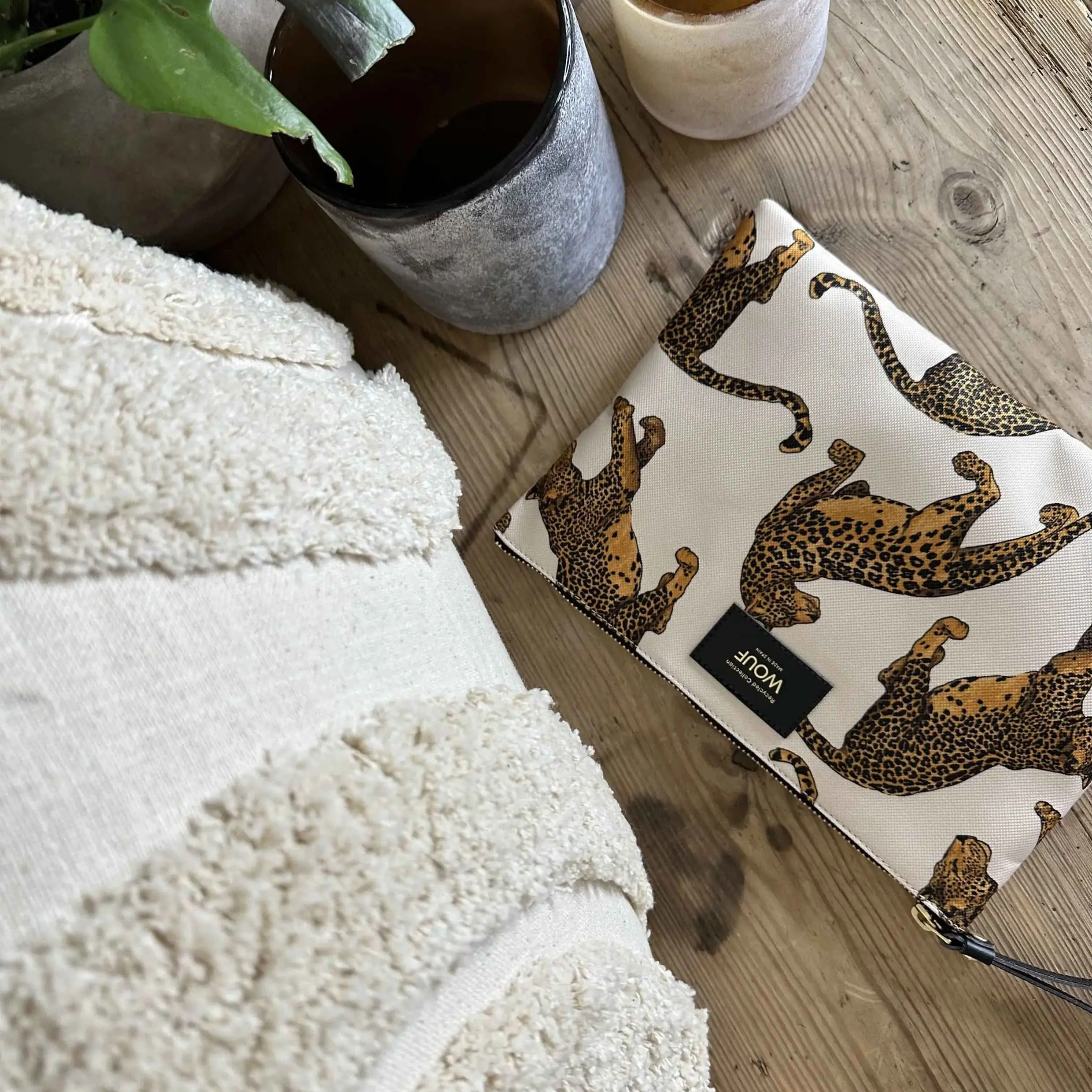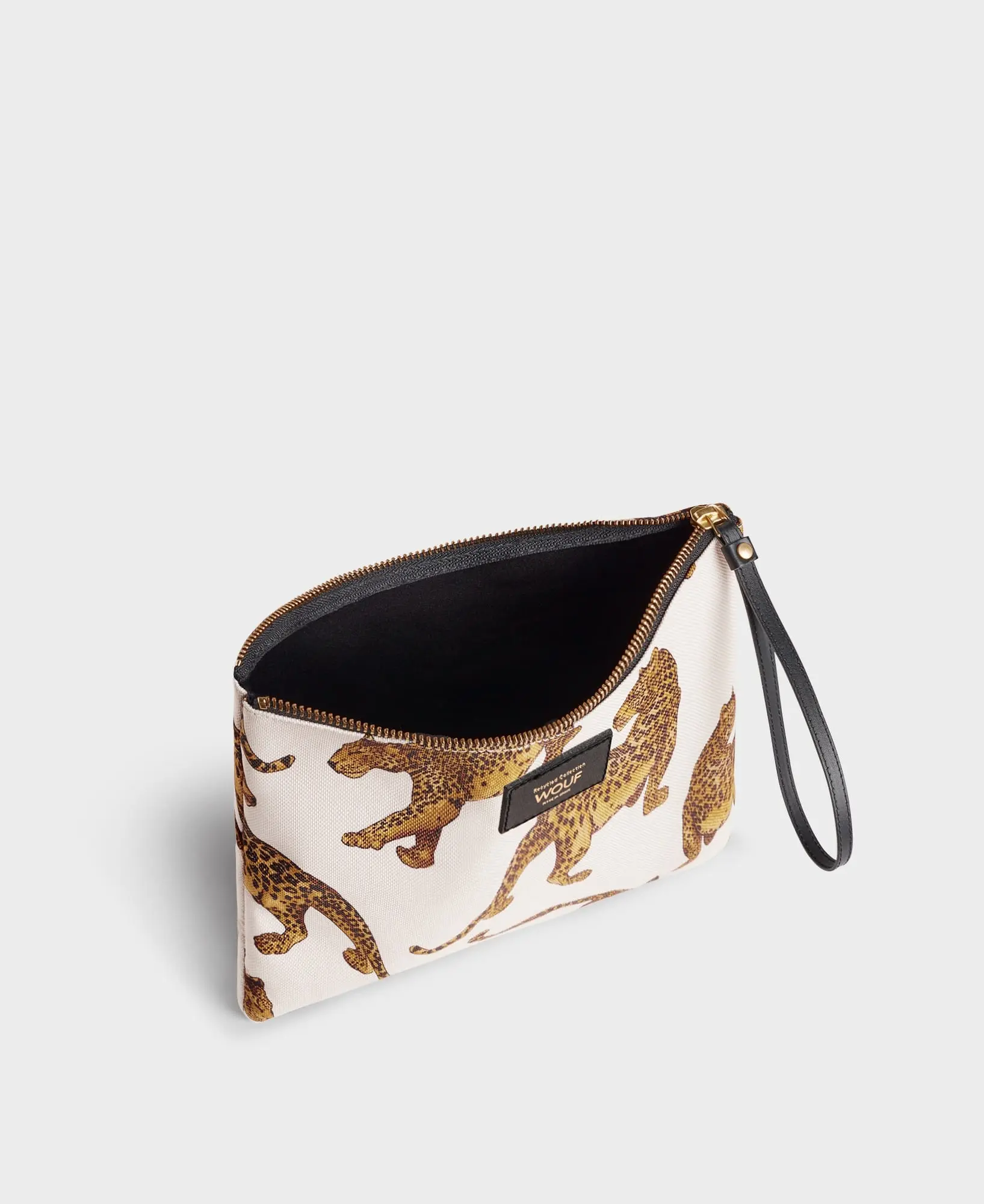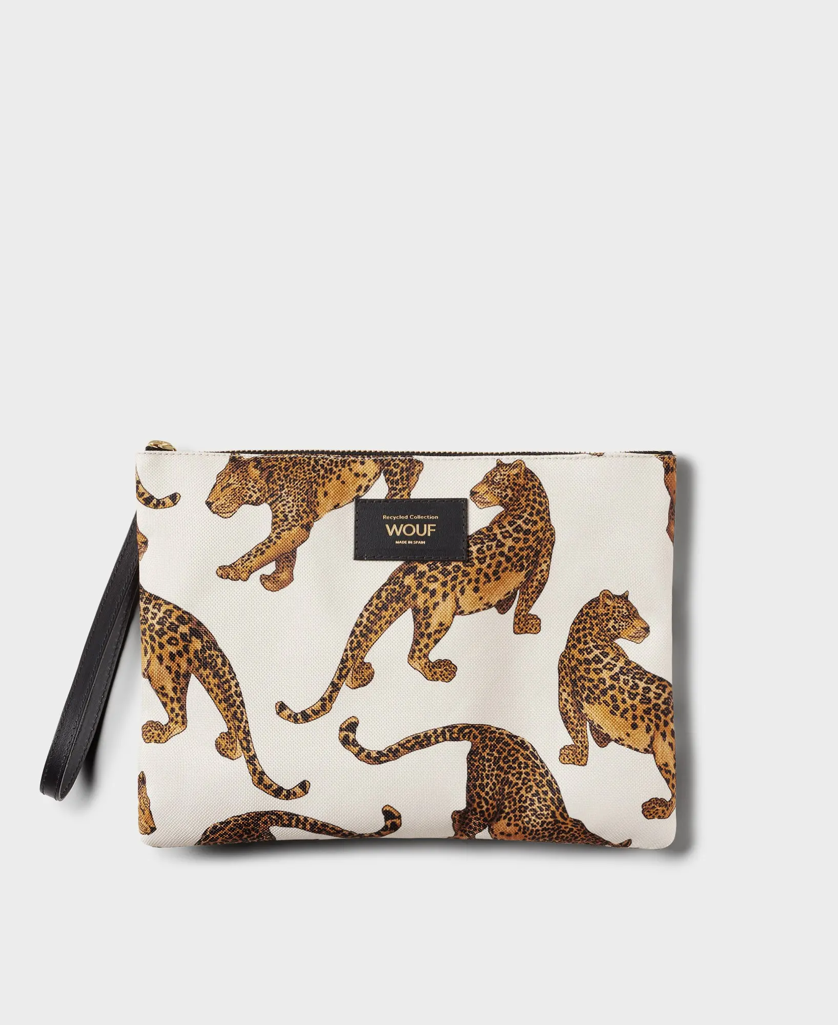 Leopard XL-vesken, laget av 100 % resirkulerte stoffer, har en vannavstøtende finish og en resirkulert lærrem til å bære i hånden eller håndleddet. Det store hovedrommet kan inneholde lommebok, telefon, nøkler og andre småting du trenger å ha for hånden. Denne vesken integreres sømløst i rutinen din, enten du er hjemme eller på farten.