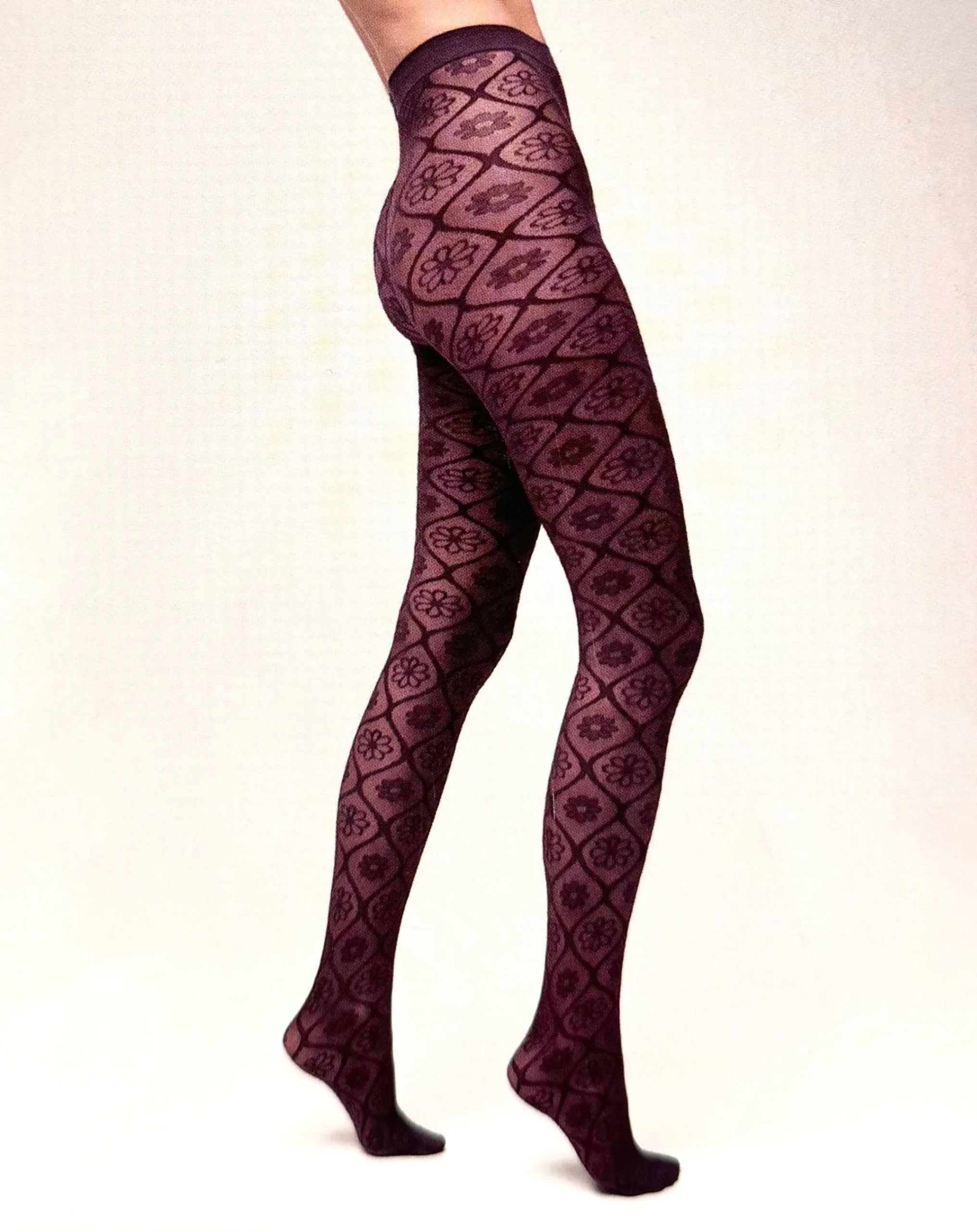 Mønstret strømpebukse i nydelig plommefarge. Perfekt for både hverdagsbruk og spesielle anledninger.
