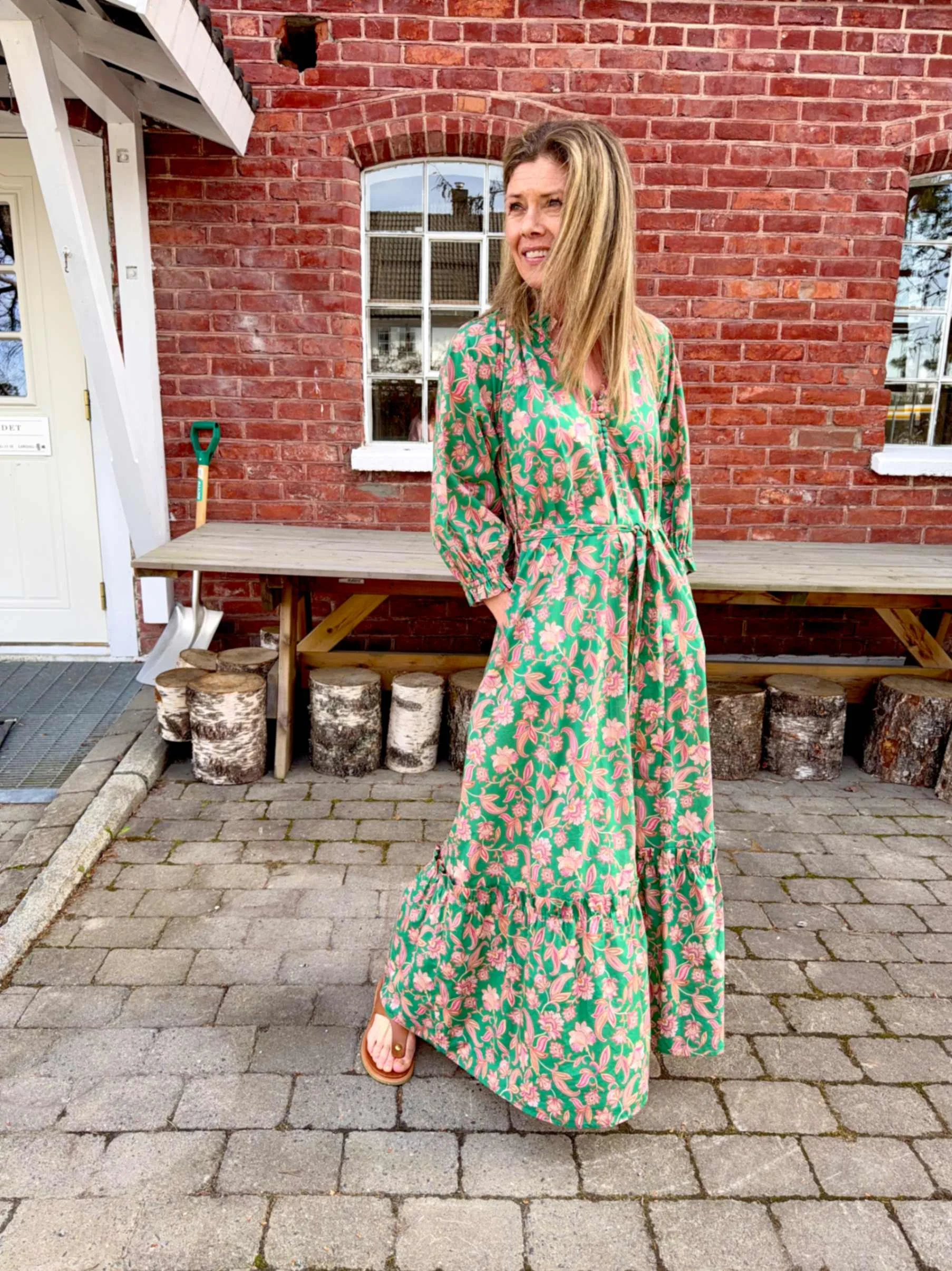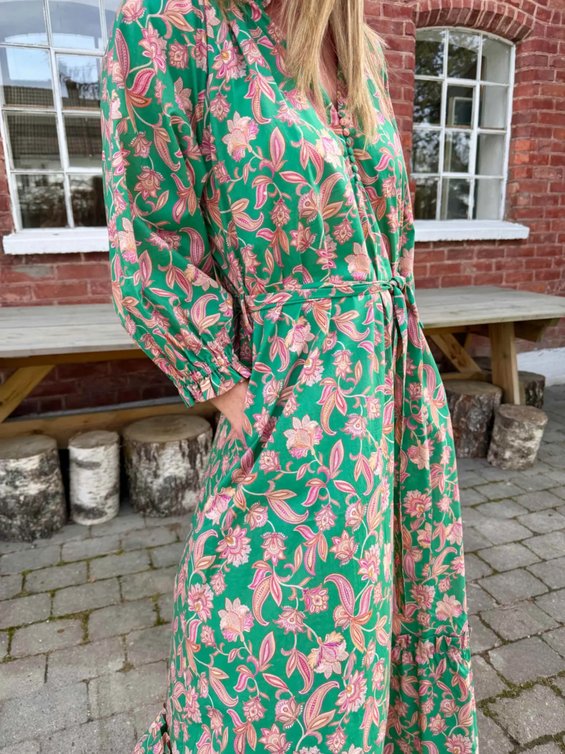 Tusneldadea Ns Dress Paisley Green fra Dea Kudibal er en elegant maxikjole med et feminint, flytende uttrykk. Den har dekorative knapper som gir et unikt preg, og er laget i 100 % bomull for god komfort. Perfekt til både hverdag og fest.