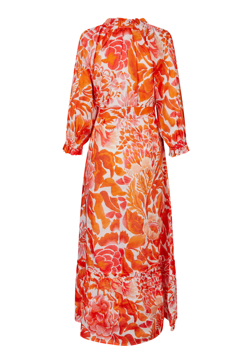 Vakker maxikjole fra Dea Kudibal laget av 100% lin. Kjolen har elastiske mansjetter, knappedetaljer og lange ermer. Skjørtet har volang som gir et element av femininitet, mens det medfølgende beltet gjør at kjolen kan trekkes inn for å definere midjen.