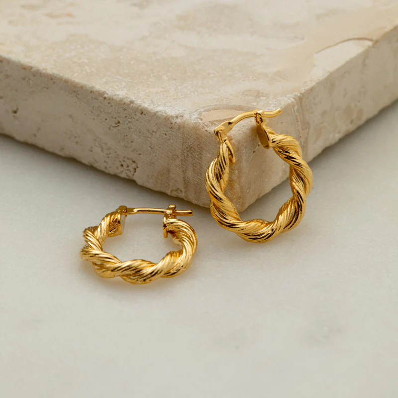Twist Textured Small Hoops med en nydelig vridd teksturert bøyle i liten størrelse er enkel å matche til det meste.