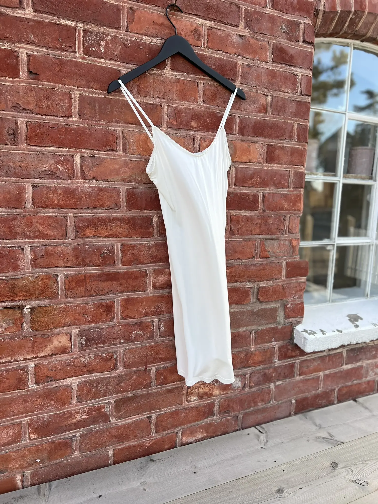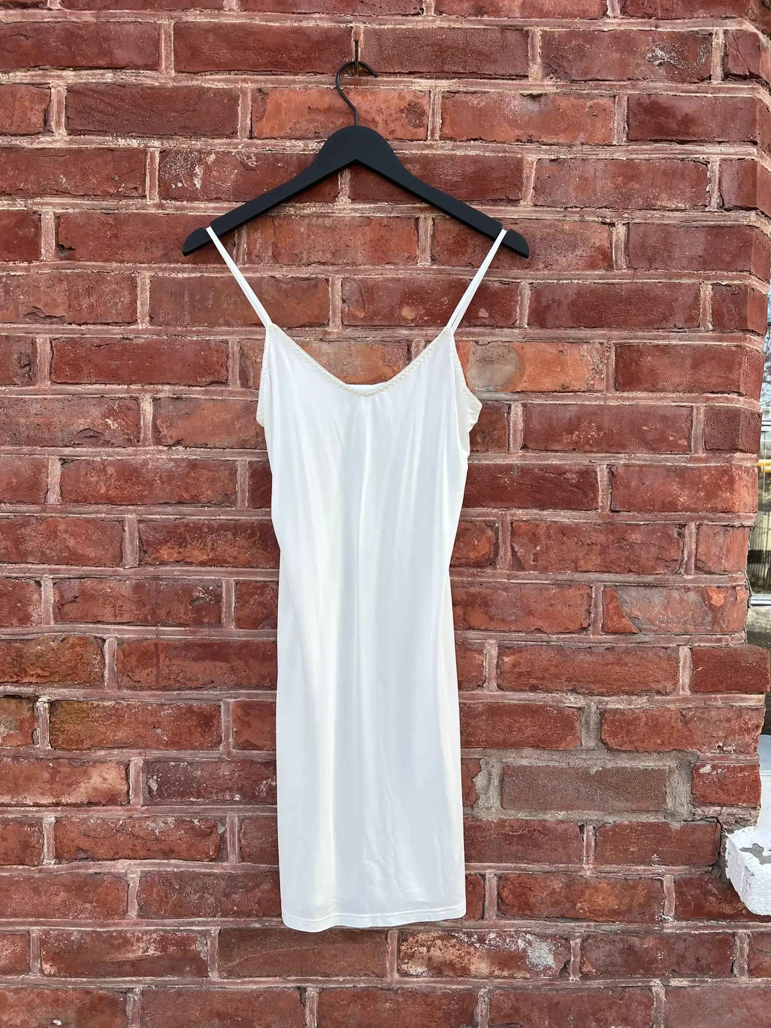 Off-white underkjole med et enkelt utseende og justerbare stropper.