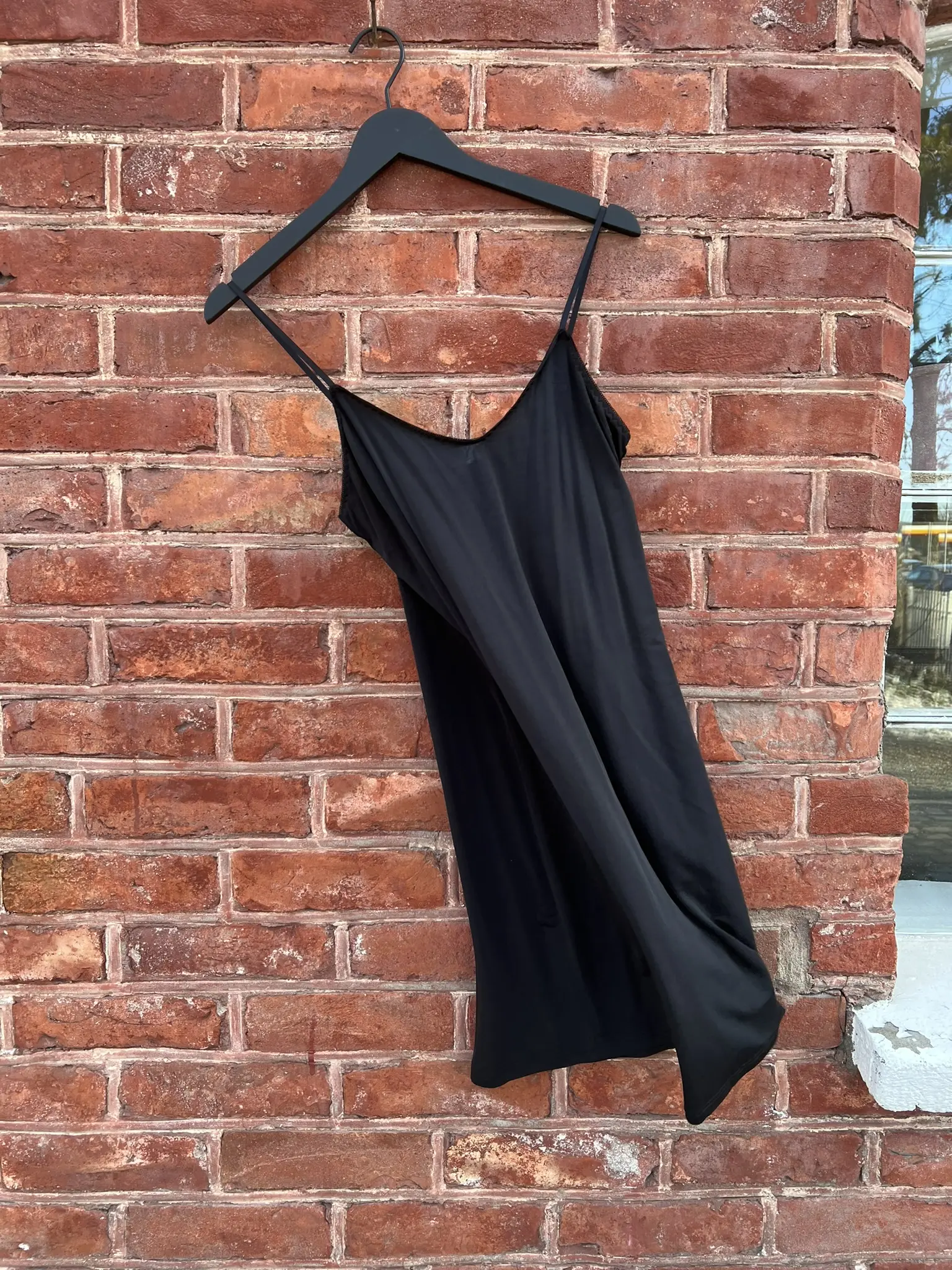 Svart underkjole med et enkelt utseende og justerbare stropper.