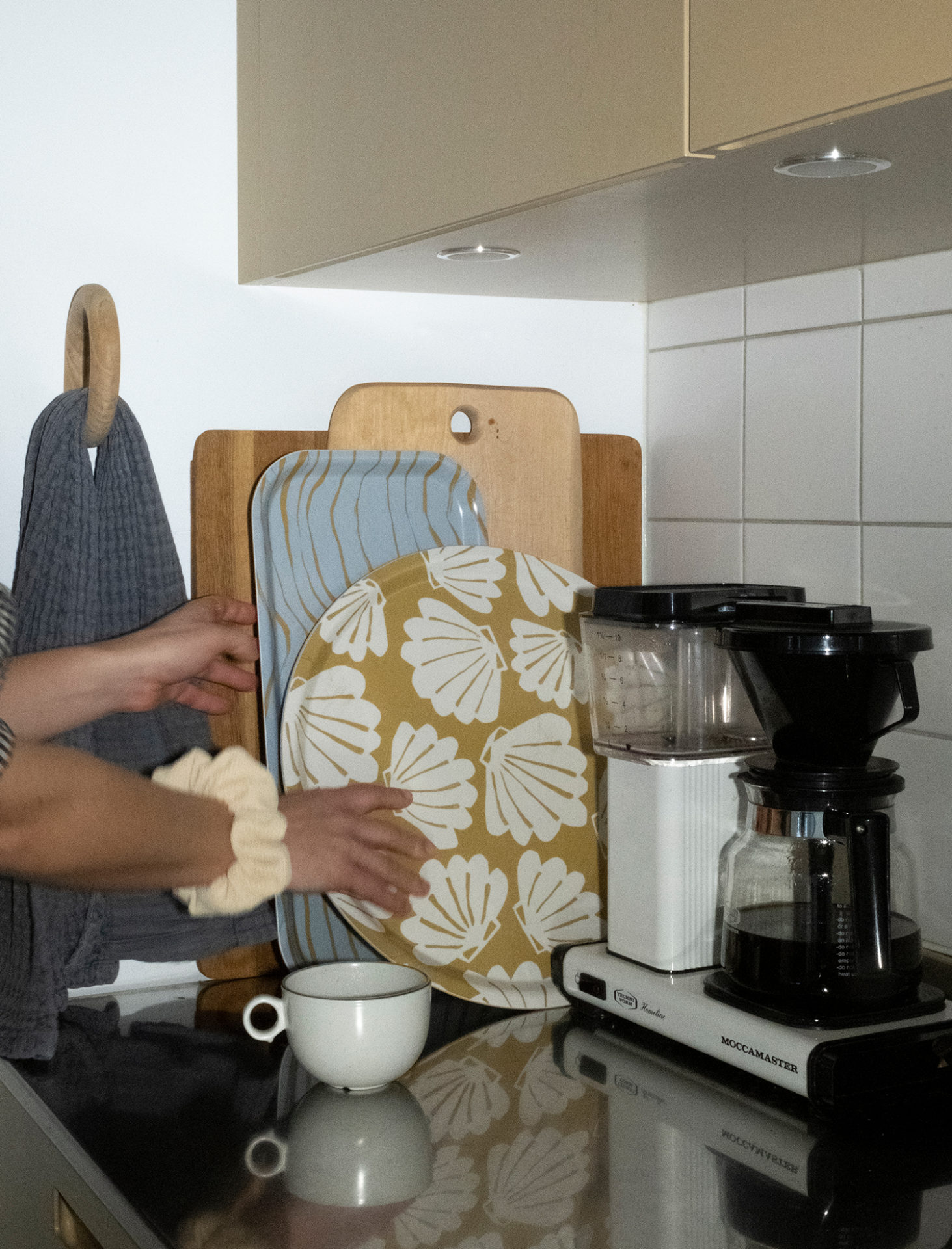 Design Emilia Ilke for Fine Little Day. Avlangt brett i laminert bjørkefiner med VÅG-mønster designet av kunstneren Emilia Ilke. Vi serverer gjerne frokost eller kaffe på dette. Også fin som interiørdetalj med oljer og krydder på. Bretter er FSC-merket, noe som betyr at de er 100 % sporbare i produksjonen. De produseres på en ansvarlig måte, med hensyn til miljø og sosiale forhold. Så når du velger et FSC-merket produkt, viser du at du bryr deg om vår natur og miljø akkurat som vi gjør.