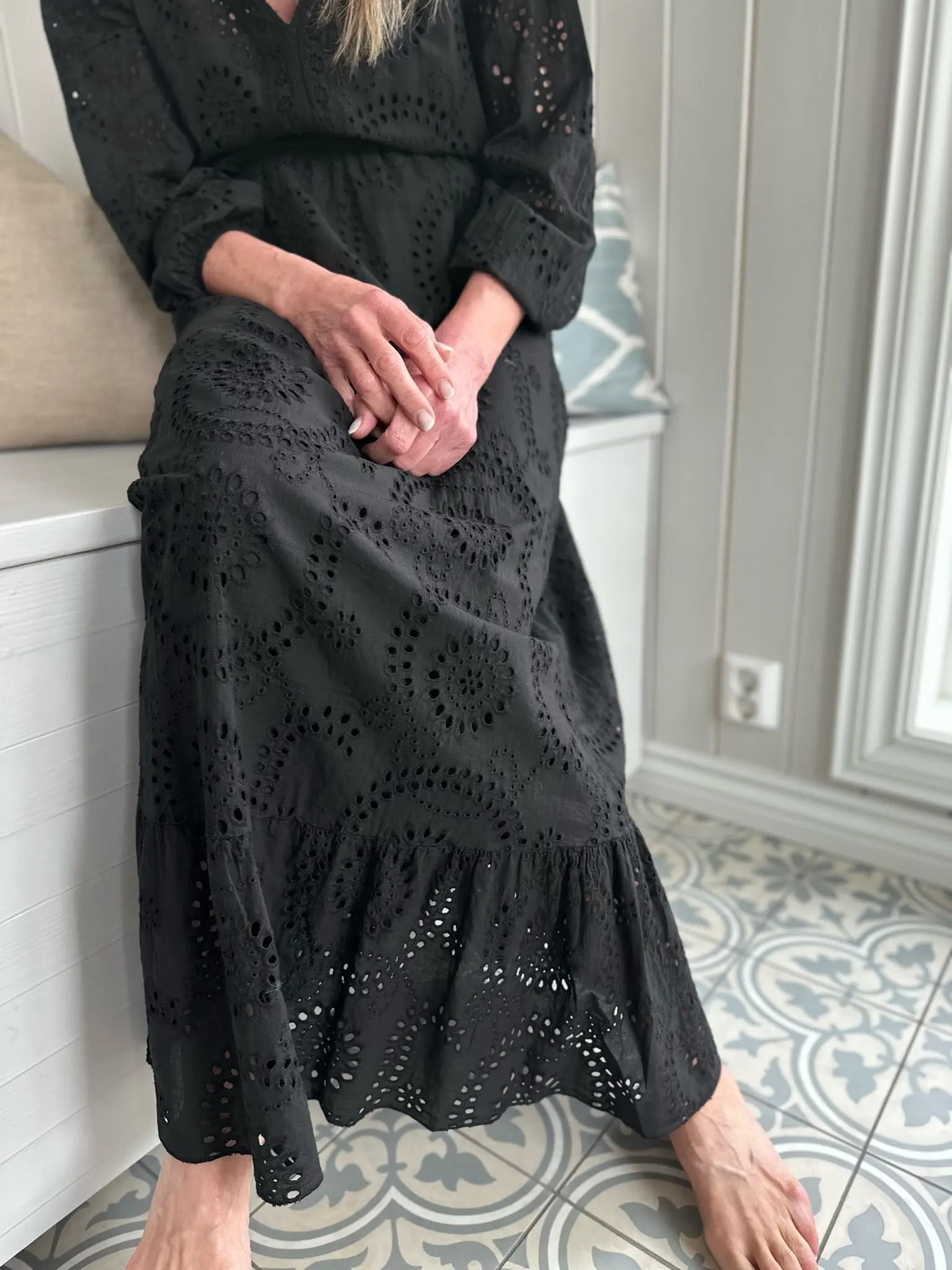 Nydelig kjole Maxi lengde i engelsk blonde.