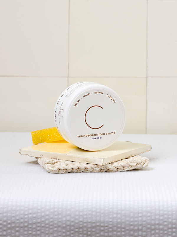 Skum opp godt med vidunderkrem og gni lett på det som trenger en puss. Skyll godt av med vann eller en fuktet klut med vann. Poler gjerne med en ren tørr klut til slutt. Svampen skylles godt, la boksen og svampen lufte seg noen timer før du setter på lokket. Svampen kan vaskes i oppvaskmaskin eller i en skål med varmt vann og litt oppvaskmiddel.