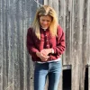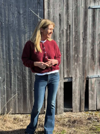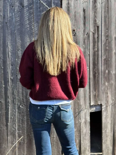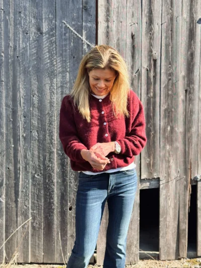 Vitow Cardigan fra American Vintage er en myk og deilig cardigan i ullblanding. Den har en dyp burgunderrød farge og en kort, cropped fasong med knapper foran. Ribbestrikkede kanter nederst, i halsen og på ermene gir en fin avslutning.